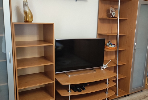 В номере: диван, зеркало, стол, стулья, шкаф, гладильная доска, микроволновая печь, набор посуды, плита, стиральная машина, сушилка для белья, телевизор ЖК, чайный набор посуды, электрочайник