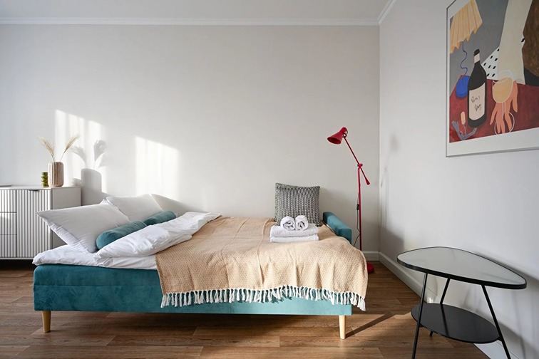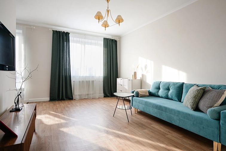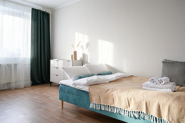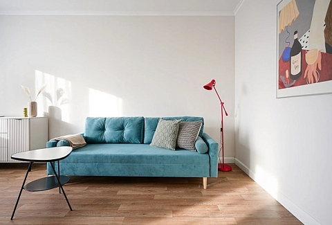 В номере: вешалка, диван раскладной, зеркало, стол, стулья, шкаф, духовой шкаф, микроволновая печь, набор посуды, плита электрическая, стиральная машина, холодильник, электрочайник