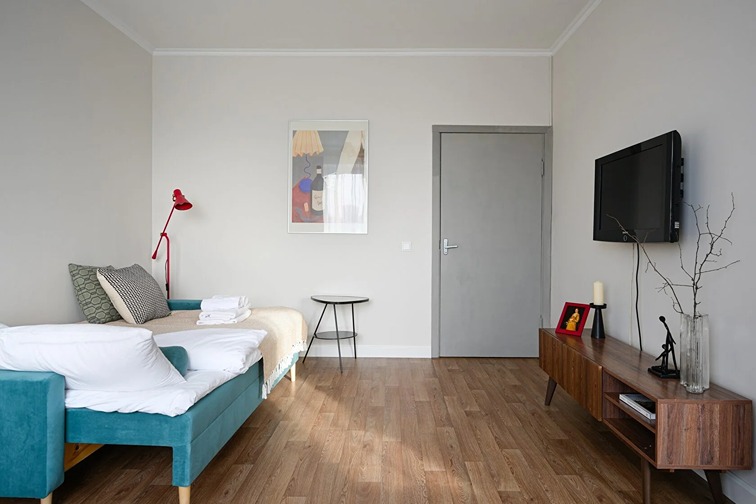 До московского вокзала – полчаса пути, а до международного аэропорта «Пулково» – всего 10 минутах на авто.Апартаменты расположились на 9 этаже многоэтажного жилого дома на улице Гагарина. В распоряжении гостей 2-местный номер с балконом. Среди удобств – кухня с электроплитой, холодильником, микроволновой печью и электрическим чайником, стиральная машина и высокоскоростной интернет, а также санузел с ванной.