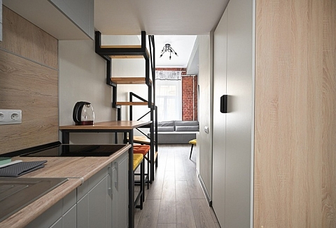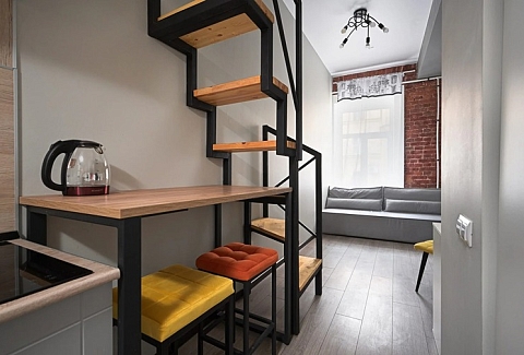 А.А. Брянцева с садом, музей Арктики и Антарктики, музей-квартира Л.Н. Гумилева, а также большой выбор ресторанов, баров, кафе и магазинов. До Московского вокзала, куда прибывают скоростные сапсаны из Москвы, – 20 минут пешком.Четырехэтажное историческое здание, в котором разместились апартаменты, расположено на улице Марата. В распоряжении гостей 2-местный двухуровневый номер со светлым интерьером. Среди удобств – кухонный уголок с электроплитой, электрочайником, микроволновой печью и холодильником, стиральная машина, телевизор и высокоскоростной интернет, санузел с душем.