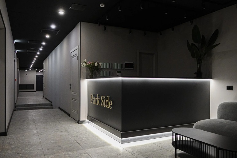 Апартаменты расположены в современном жилом комплексе Park Side, в северной части Санкт-Петербурга. В шаговой доступности остановки наземного транспорта и станция метро «Черная речка». Рядом множество зон и заведений для отдыха: Пионерский и Ланской сады, Ботанический сад академии им.