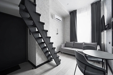 С.М. Кирова, Строгановский парк, а также большой выбор баров, ресторанов, кафе и магазинов. До исторического центра и Московского железнодорожного вокзала – чуть менее часа езды.Апартаменты расположились в пятиэтажном историческом здании на Сердобольской улице. В распоряжении гостей однокомнатные 2-местные номера с современным интерьером, некоторые из которых двухуровневые. Апартаменты оснащены кухонным уголком с электроплитой, электрочайником, санузлом с душем. В комнатах – телевизор и высокоскоростной интернет, среди прочих удобств – стиральная машина. Для гостей, приезжающие на авто, смогут оставить машину на парковке.