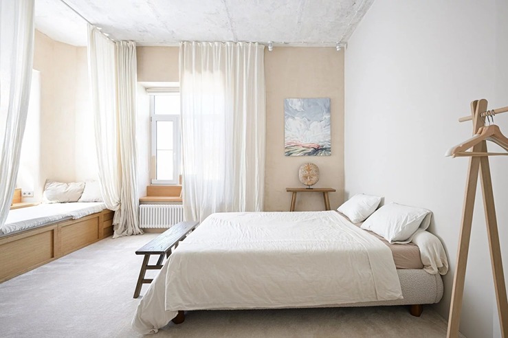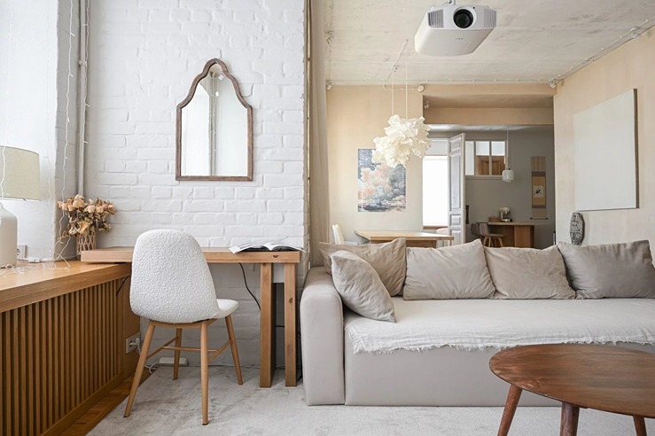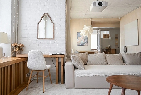 В распоряжении гостей однокомнатный и 2-местный номер со светлым интерьером. В числе удобств – кухня с электроплитой, электрочайником, мини-холодильником, посудомоечной машиной, проектор с экраном, и высокоскоростной интернет. В ванной комнате установлен душ, есть фен и косметические принадлежности для отдыхающих.