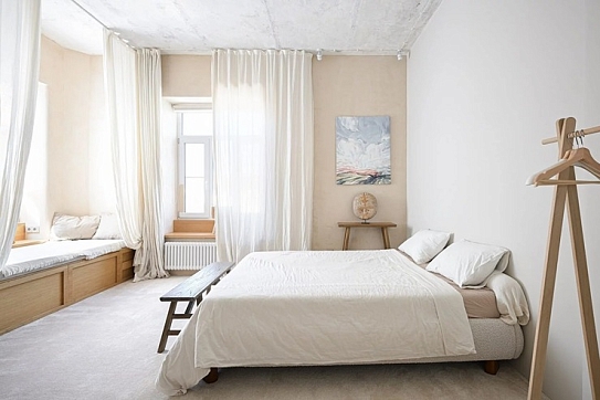 В номере: вешалка, зеркало, кровать двуспальная, стол, стулья, шкаф, кофемашина, мини-холодильник, набор посуды, плита электрическая, посудомоечная машина, проектор мультимедийный, электрочайник