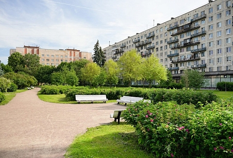 Поездом до ж/д вокзала Московский (г. Санкт-Петербург), далее на метро до станции «Новочеркасская», далее пройти 800 м до апартаментов.