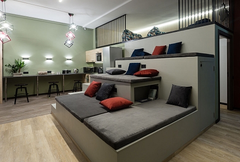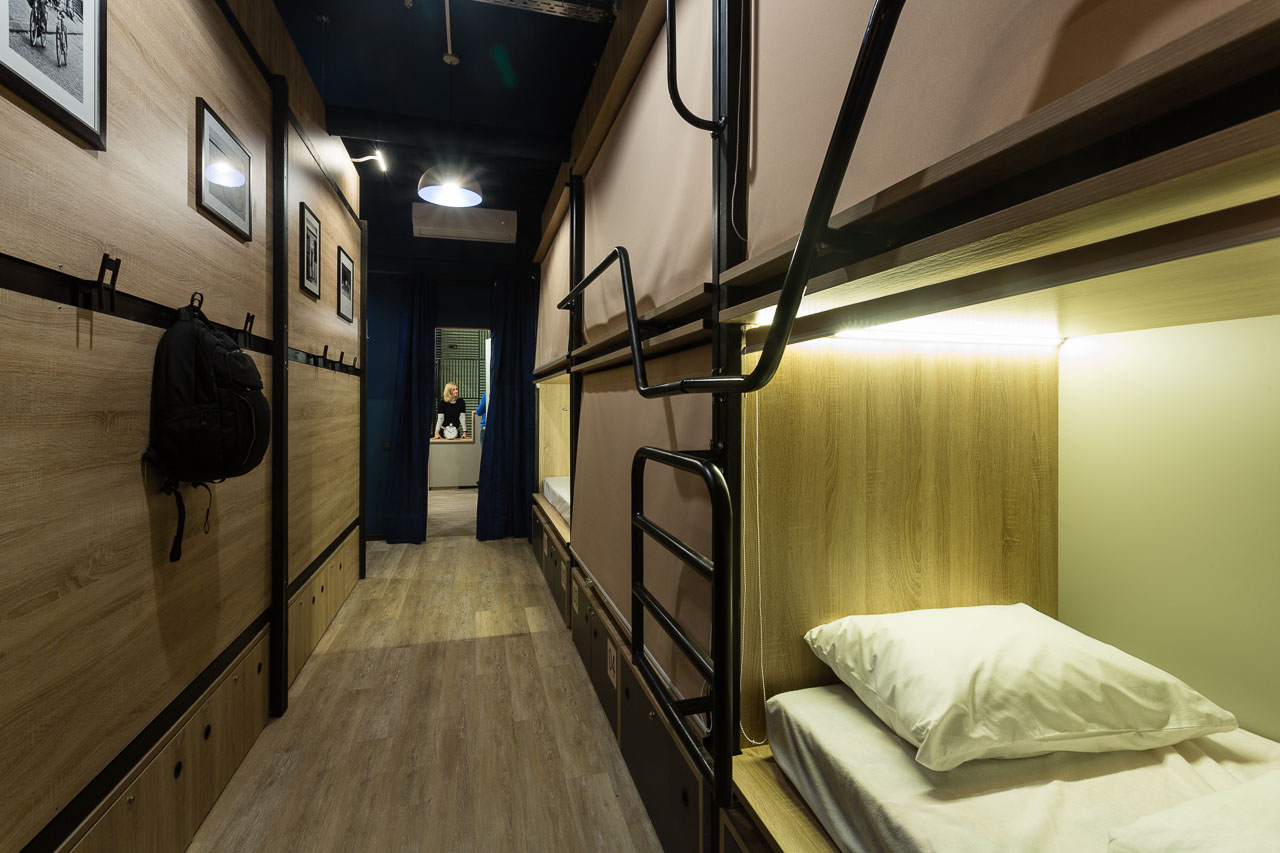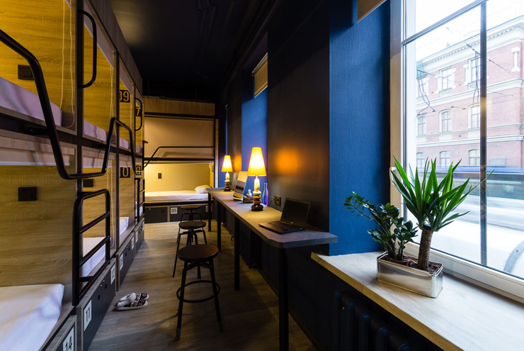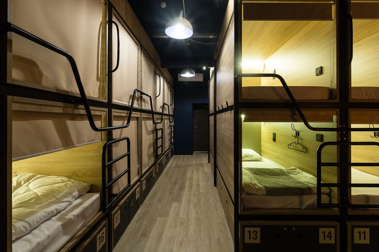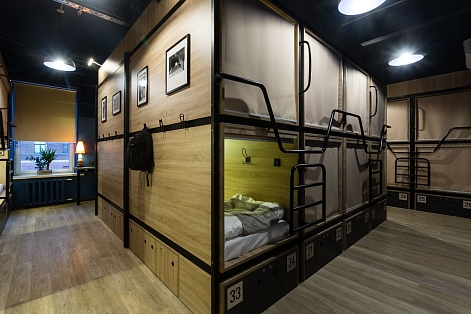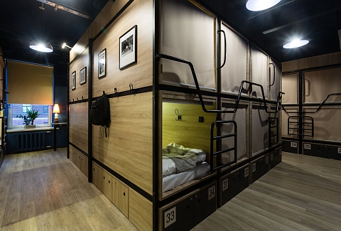 До главных достопримечательностей северной столицы — Русского музея, Казанского собора, Зимнего Дворца можно дойти пешком.Отель находится в 3-х этажном здании, расположенном на пересечении Суворовского проспекта и 2-й Советской улицы. Гостей ожидают два отдельных двухместных номера и один общий капсульного типа, рассчитанный на 34 спальных места. Все капсулы оборудованы розеткой, запирающимся шкафчиком, полочкой для телефона и шторкой. В отдельных номерах – индивидуальный санузел, расположенный вне комнаты, но закрепленный за номером.В распоряжении гостей общая кухня, оснащенная посудой и бытовой техникой, также есть стиральная и сушильная машины. Поработать за ноутбуком, почитать книгу, отдохнуть или просто приятно провести время можно в лаундж-зоне возле ресепшена.