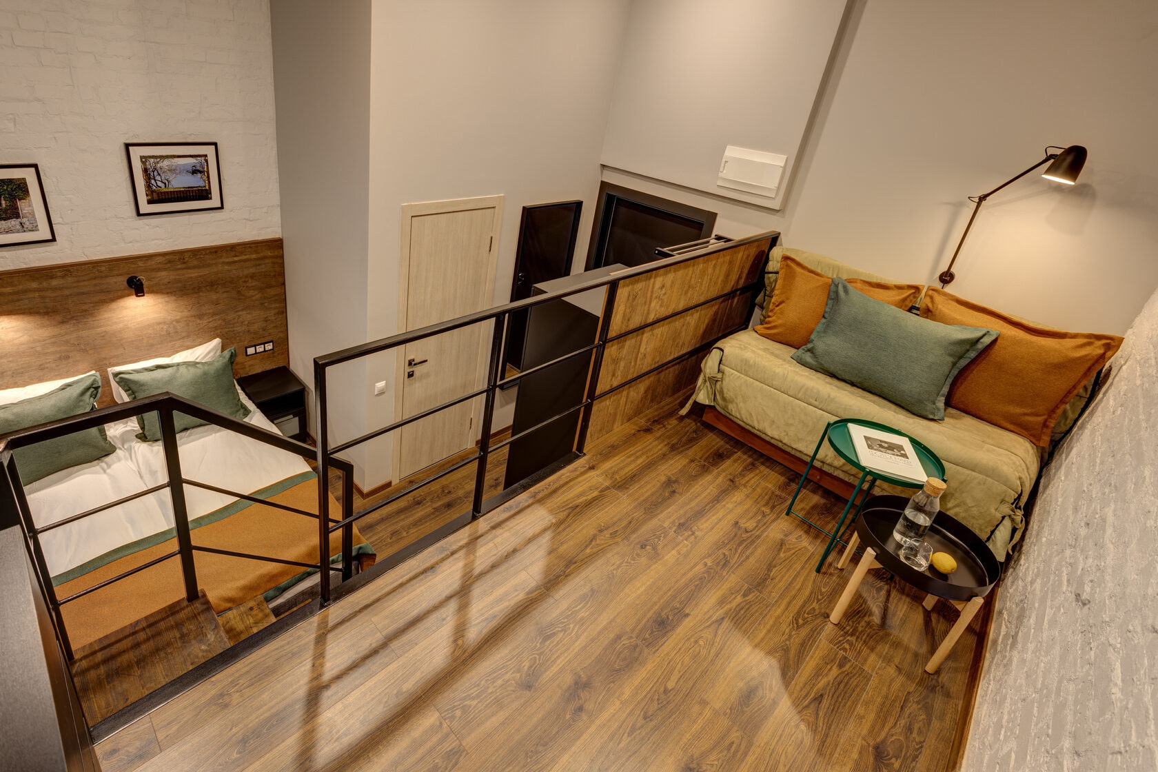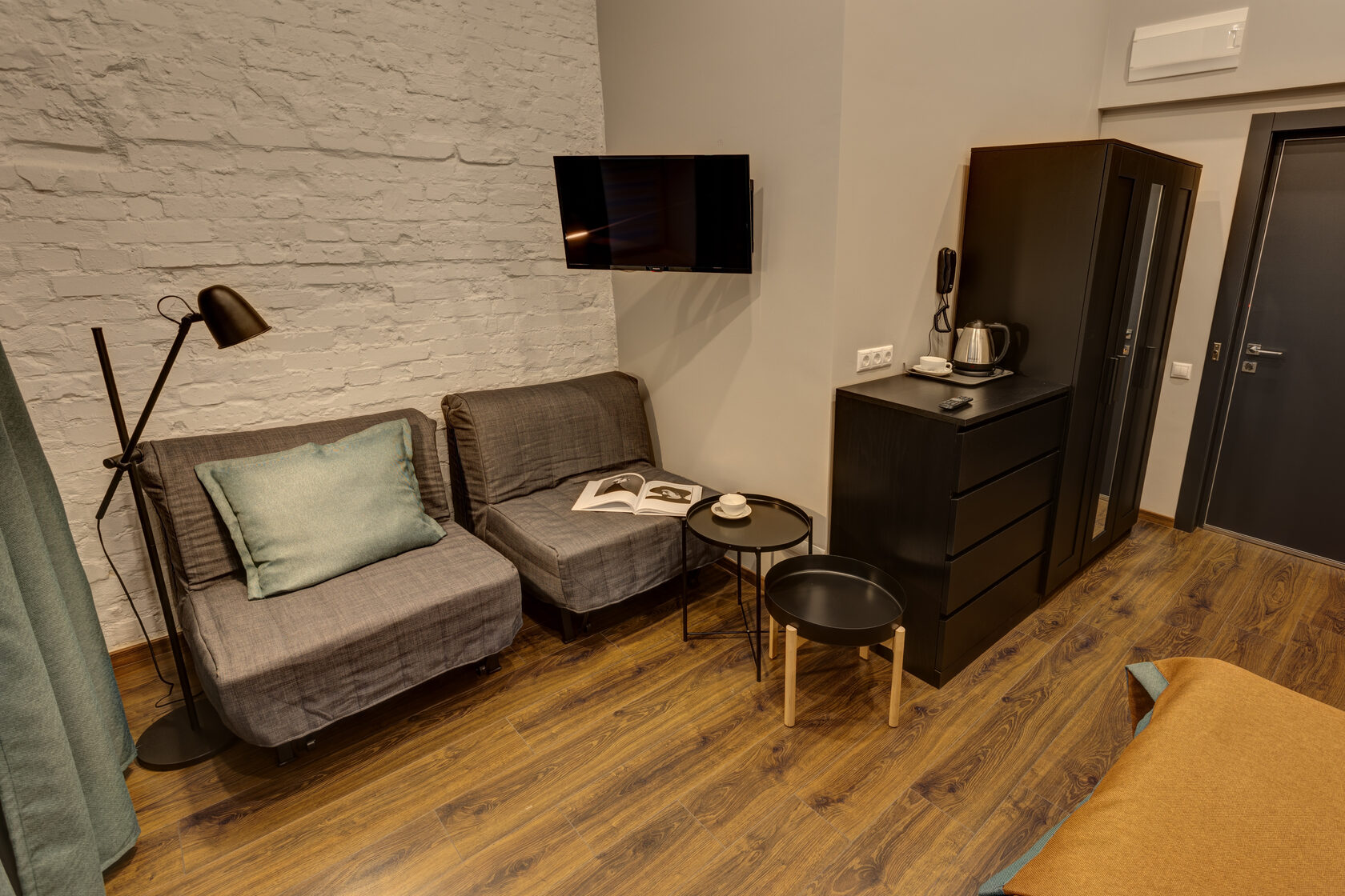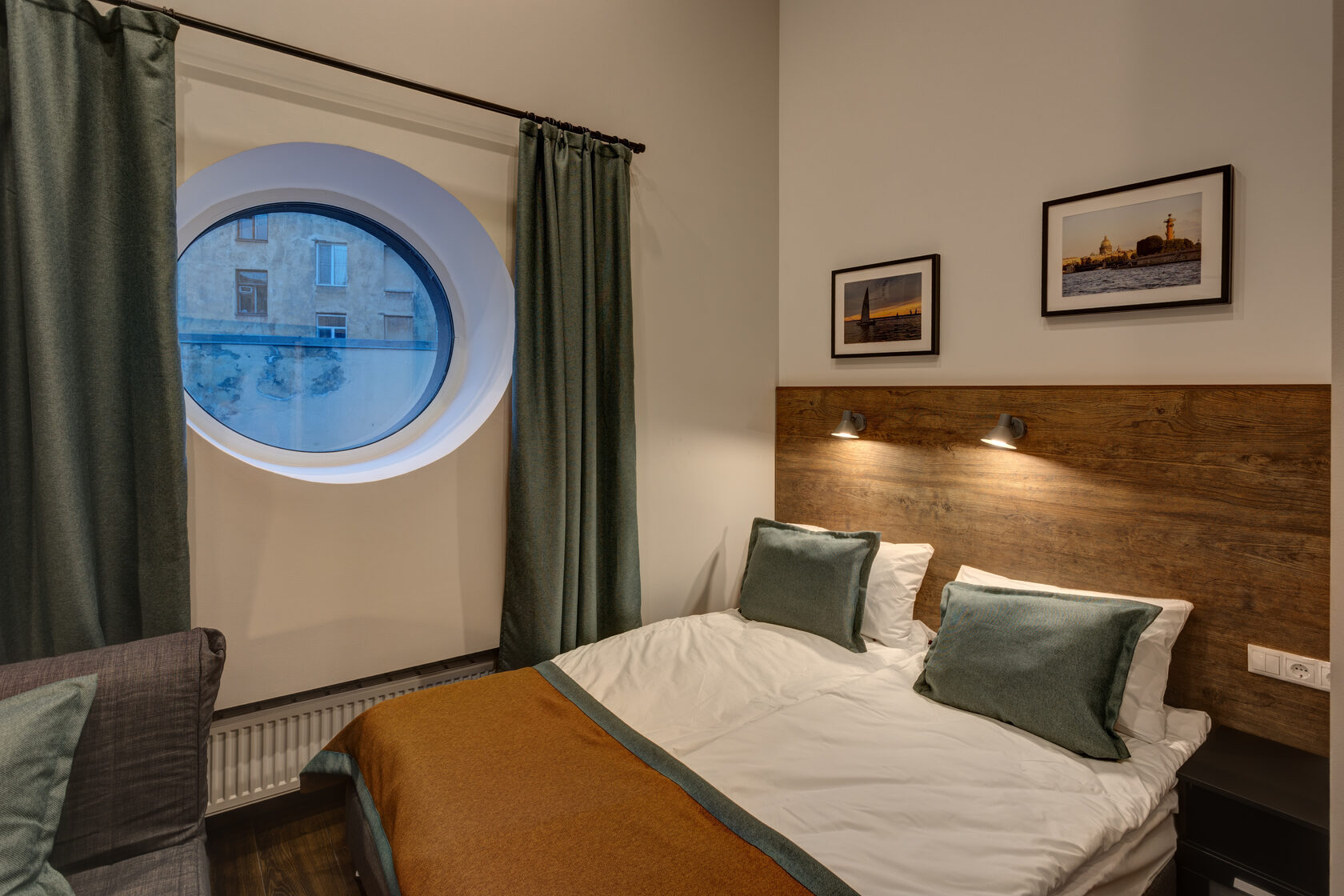 До Московского и Витебского вокзалов всего 2,5 километра, дорога до аэропорта займет около 40 минут.Отель - отдельно стоящее здание во внутреннем дворе жилого дома. В здании 2 этажа. В номерах стильный современный интерьер с элементами loft, есть все необходимое для комфортного размещения: индивидуальный санузел с душем, плазменный телевизор, мини-холодильник, электрочайник, фен.Гостям доступна парковка, сеть wi-fi, на ресепшене можно заказать трансфер или приобрести экскурсии.