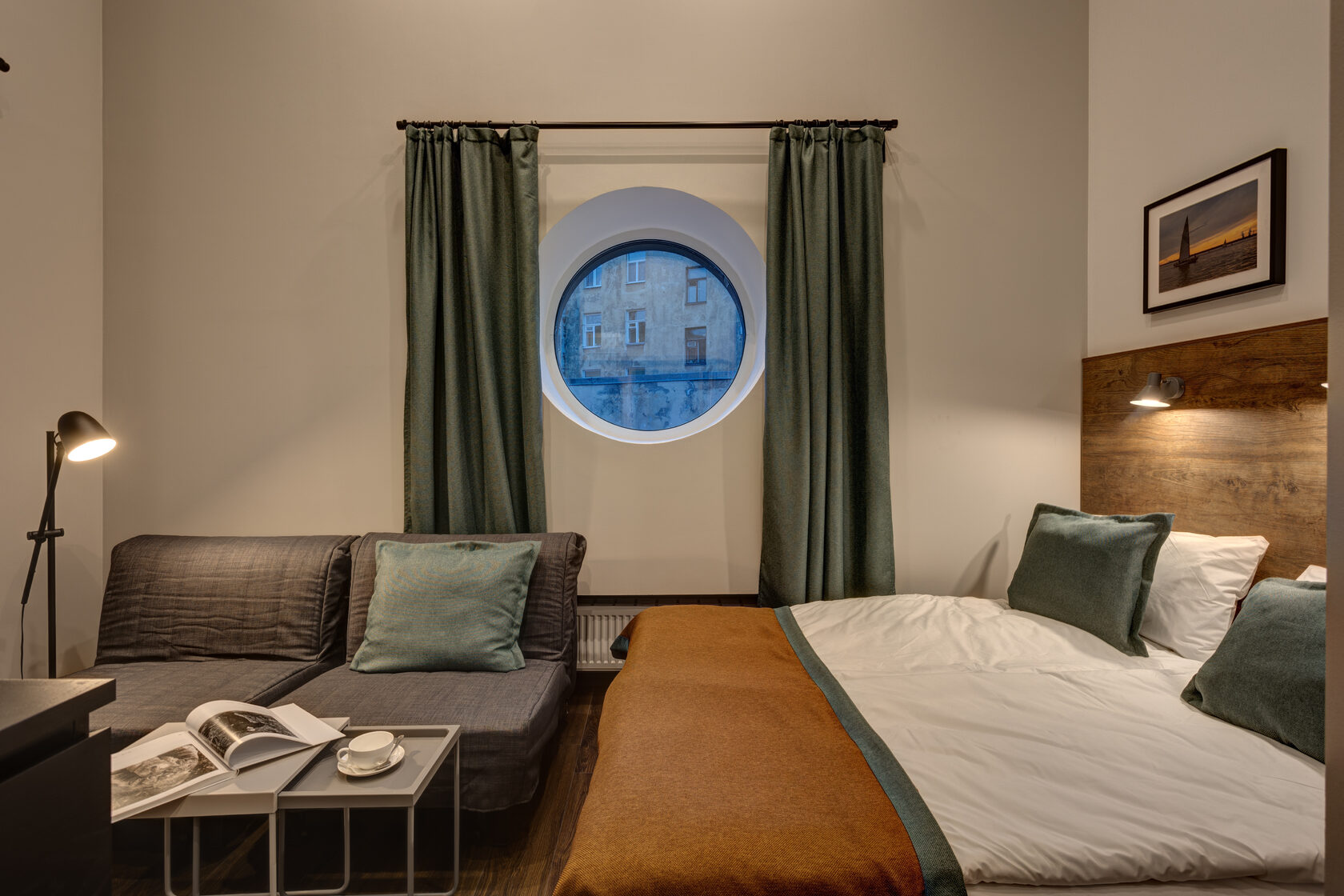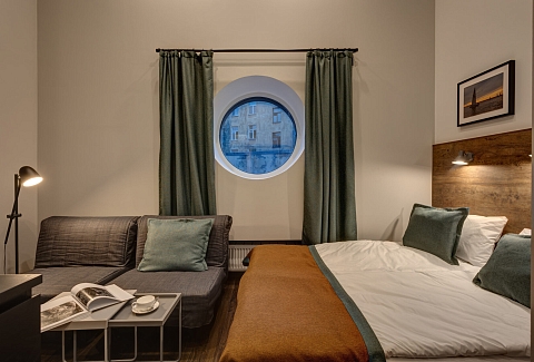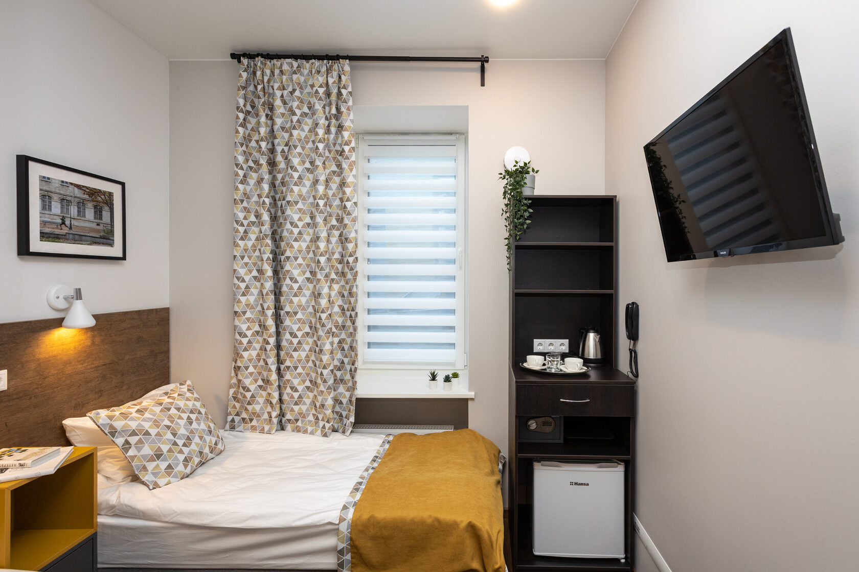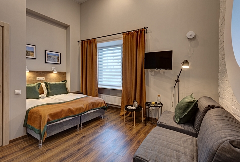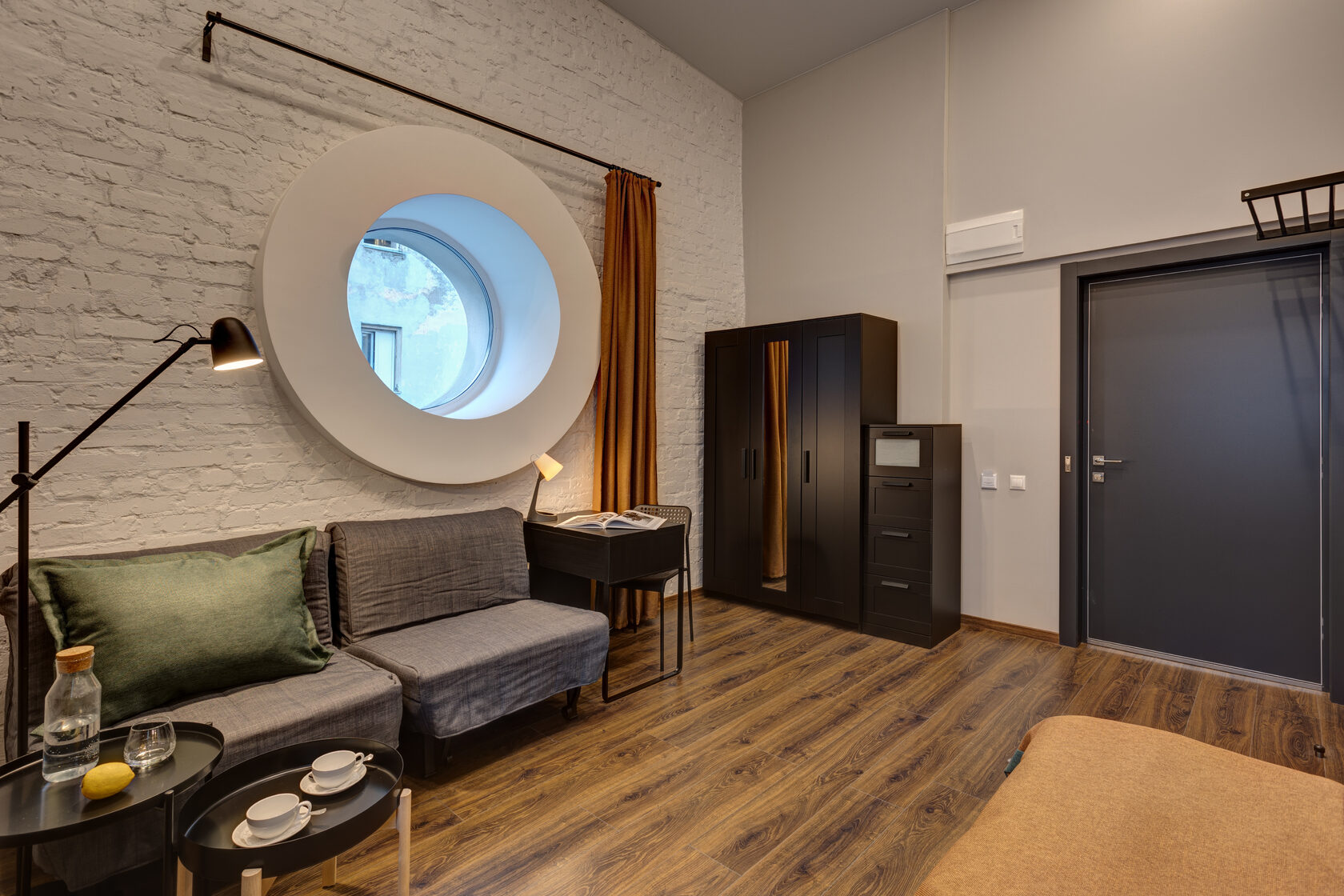 До Московского и Витебского вокзалов всего 2,5 километра, дорога до аэропорта займет около 40 минут.Отель - отдельно стоящее здание во внутреннем дворе жилого дома. В здании 2 этажа. В номерах стильный современный интерьер с элементами loft, есть все необходимое для комфортного размещения: индивидуальный санузел с душем, плазменный телевизор, мини-холодильник, электрочайник, фен.Гостям доступна парковка, сеть wi-fi, на ресепшене можно заказать трансфер или приобрести экскурсии.
