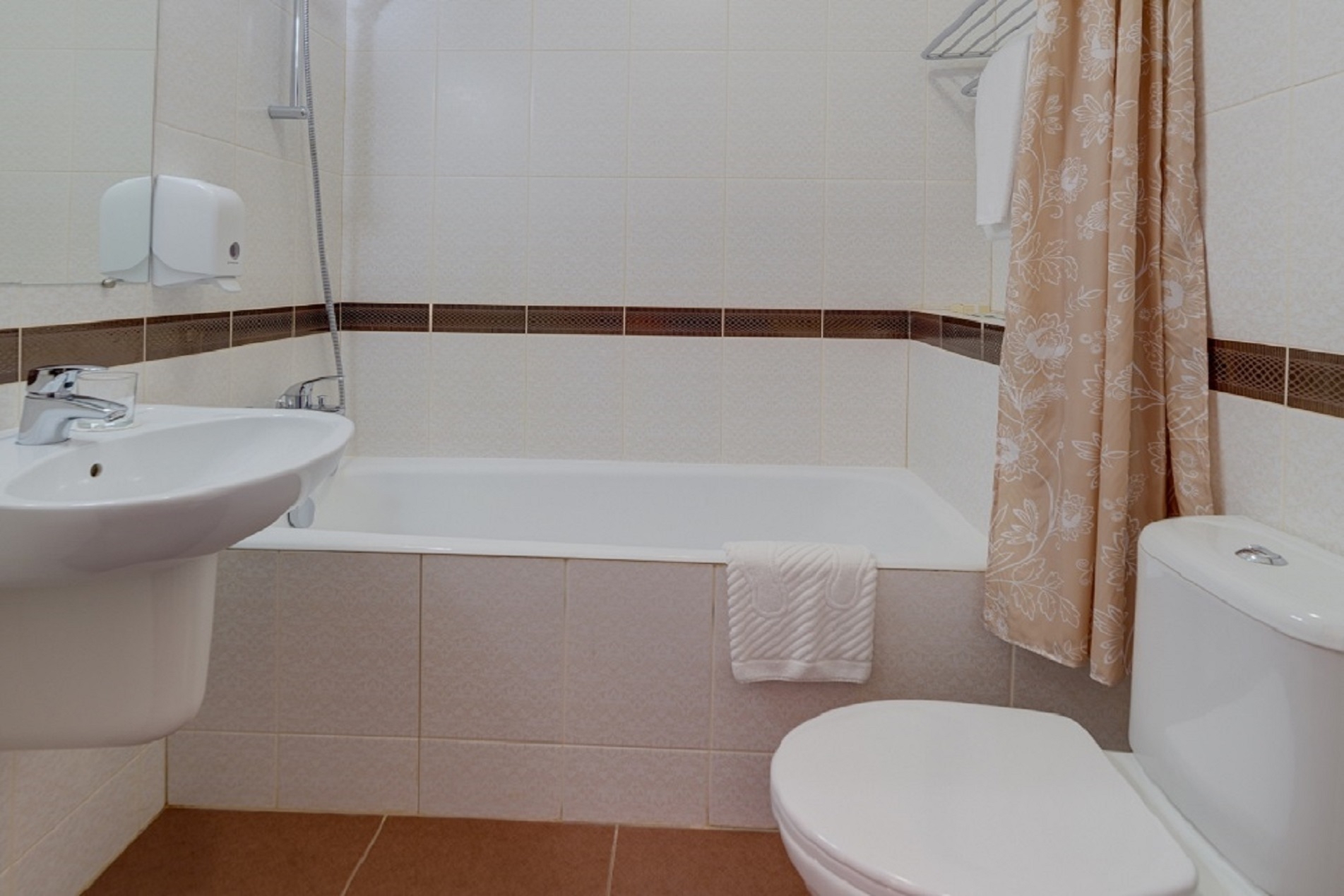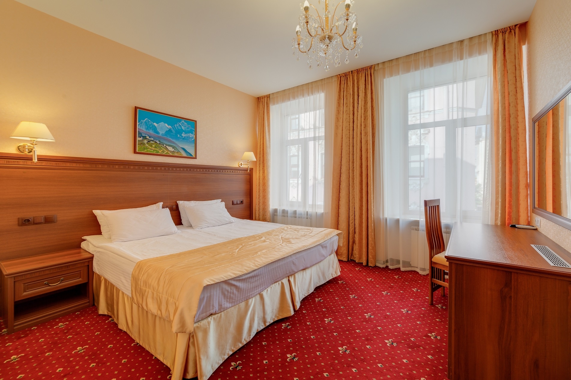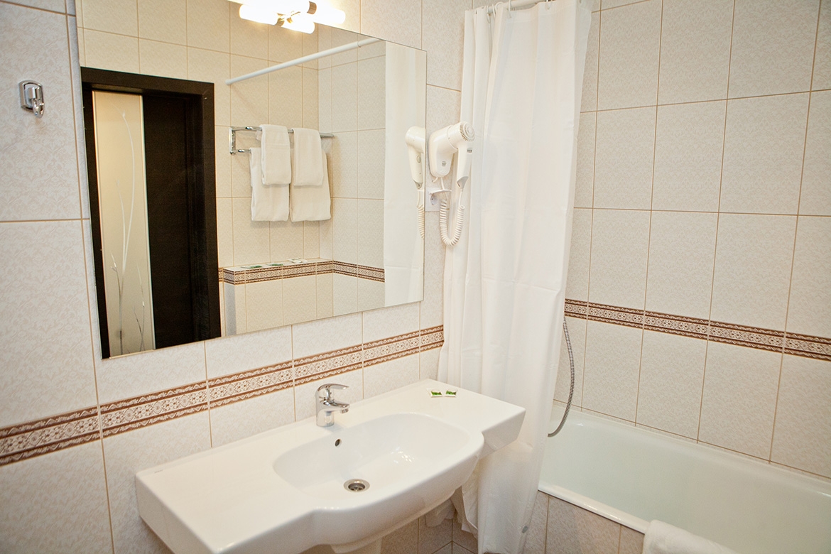 Гостей ожидают номера разных категорий комфорта, в том числе и Апартаменты с кухней. В комнатах — классический интерьер, помимо удобного мебельного гарнитура есть кондиционер, телевизор с плоским экраном, мини-холодильник. В ванной для отдыхающих подготовлены косметические наборы, имеется фен. Везде доступен беспроводной интернет.