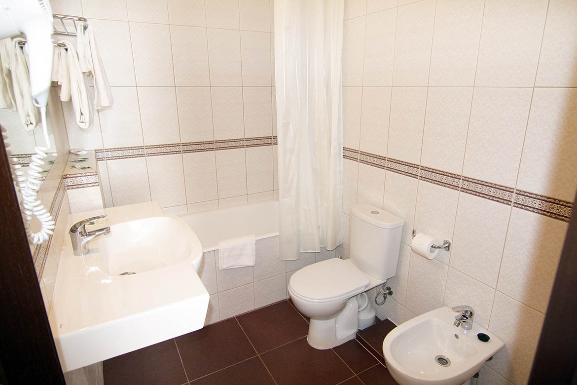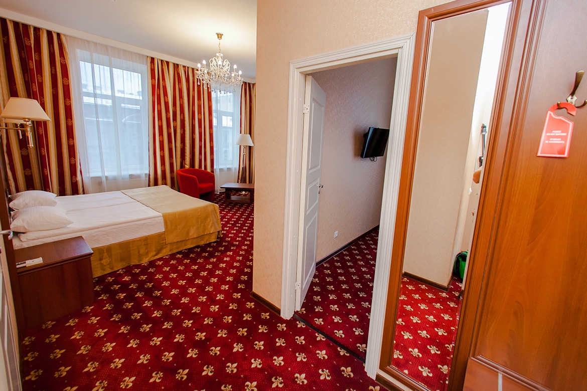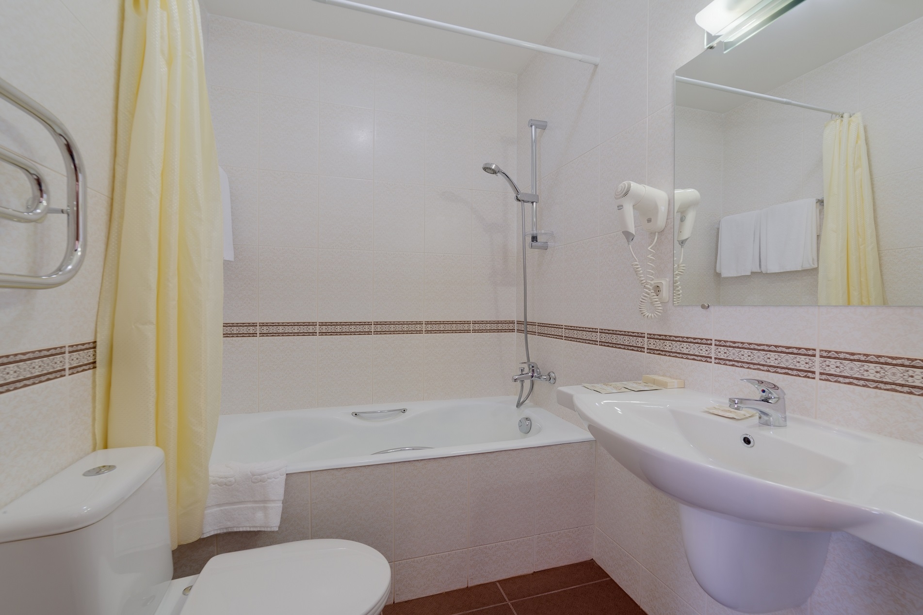 Гостей ожидают номера разных категорий комфорта, в том числе и Апартаменты с кухней. В комнатах — классический интерьер, помимо удобного мебельного гарнитура есть кондиционер, телевизор с плоским экраном, мини-холодильник. В ванной для отдыхающих подготовлены косметические наборы, имеется фен. Везде доступен беспроводной интернет.