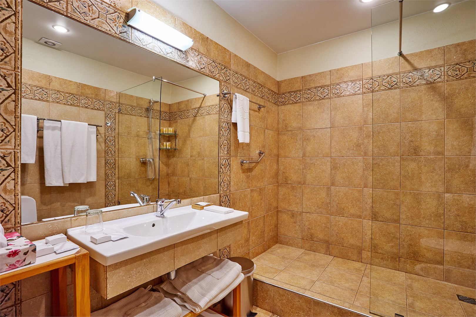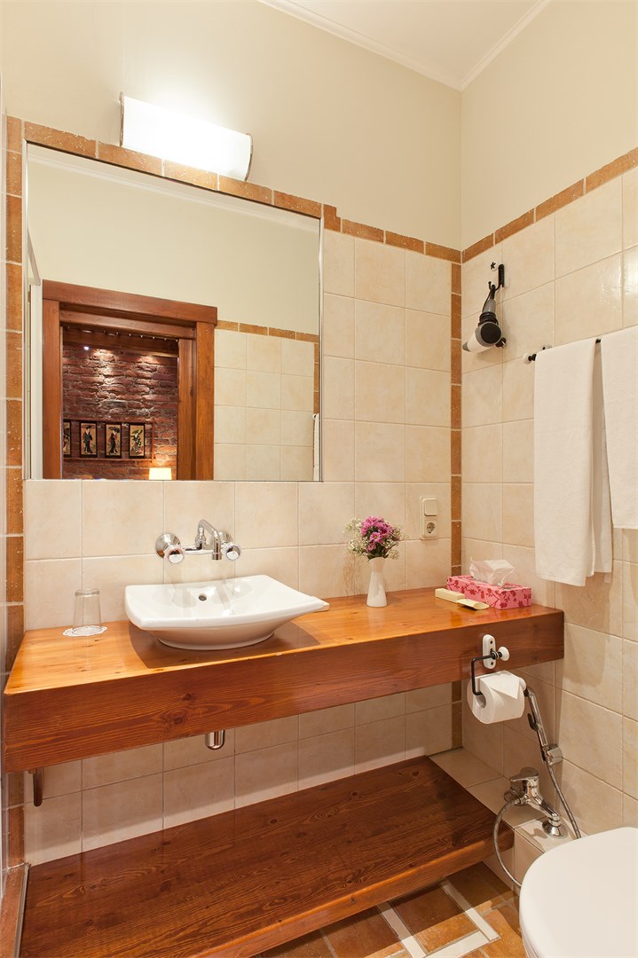 Санузел: с душем, тапочки, теплый пол, туалетные принадлежности, фен, халат