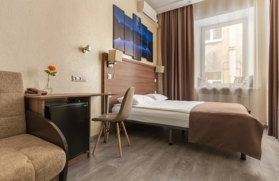 Каждый из них имеет одно- и двухместное размещение. Во всех номерах гостиницы есть кровать, сейф, зеркало, шкаф, стол, стул, телевизор, телефон, фен и конечно же душ. К дополнительным услугам относятся бесплатный беспроводной интернет и чистые халаты. Все номера для некурящих людей.Отель выгодно отличается от других своим местоположением, он находится на берегу реки, которая разделяет два острова Петроградский и Аптекарский. Недалеко находится знаменитая Петропавловская крепость. Но, тем не менее, до ближайшего метро «Петроградская» всего пять минут пешком. Ещё одно выгодное отличие – интерьер. Здесь царит атмосфера домашнего уюта и комфорта, постояльцы могут посидеть вечером возле камина с книгой из местной домашней библиотеки или взять совершенно бесплатно велосипед и прокатиться по набережной.Гостиница «Амстердам» отлично подходит и для деловых встреч, конференций, семинаров. Тут находится комната для переговоров на 10 человек. По желанию клиентов деловые встречи могут проводиться в гостиничном кафе.Мини-отель отлично подходит для туристов, которые ещё не бывали в Санкт-Петербурге. Местоположение позволяет добраться в любую точку города, когда только это понадобиться, кроме этого здесь отличный сервис, демократичные цены и уютная атмосфера гостиничных номеров.