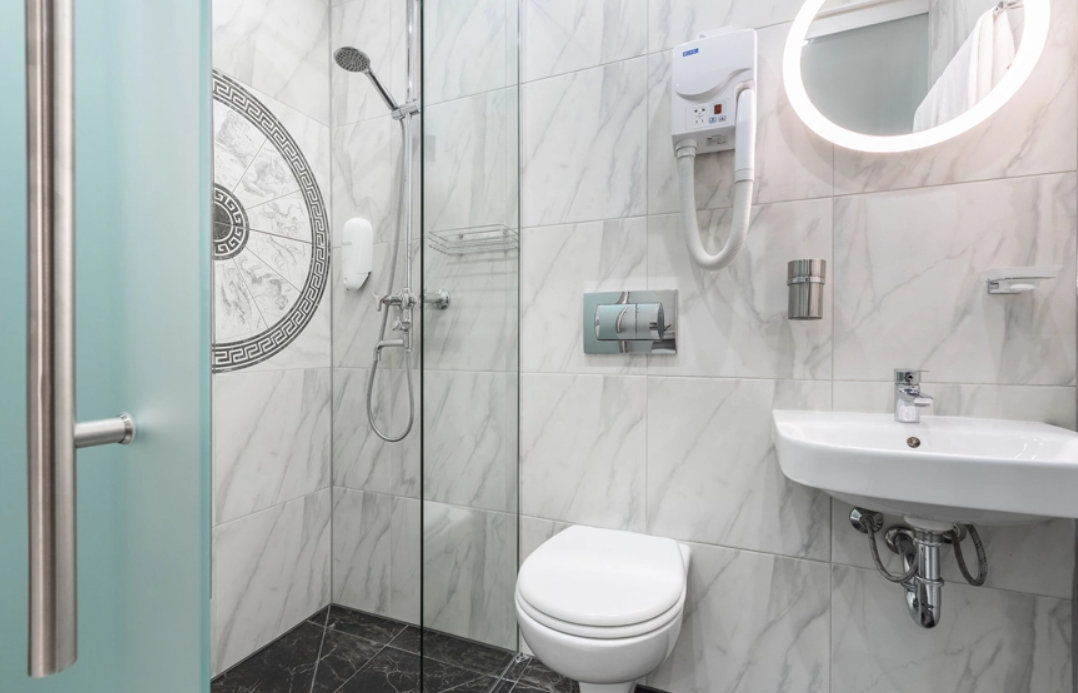 Санузел: с душевой кабиной, туалетные принадлежности, фен
