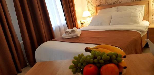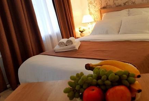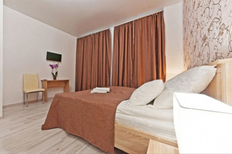 В пешей доступности работают рестораны кафе с широким выбором предлагаемой продукции.Для размещения гостей предлагаются двухместные и трехместные номера категорий: Стандарт и Эконом. Здесь выполнена современная отделка и есть все необходимое для полноценного отдыха. В собственной ванной комнате можно воспользоваться феном и средствами личной гигиены.
