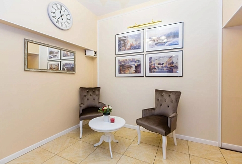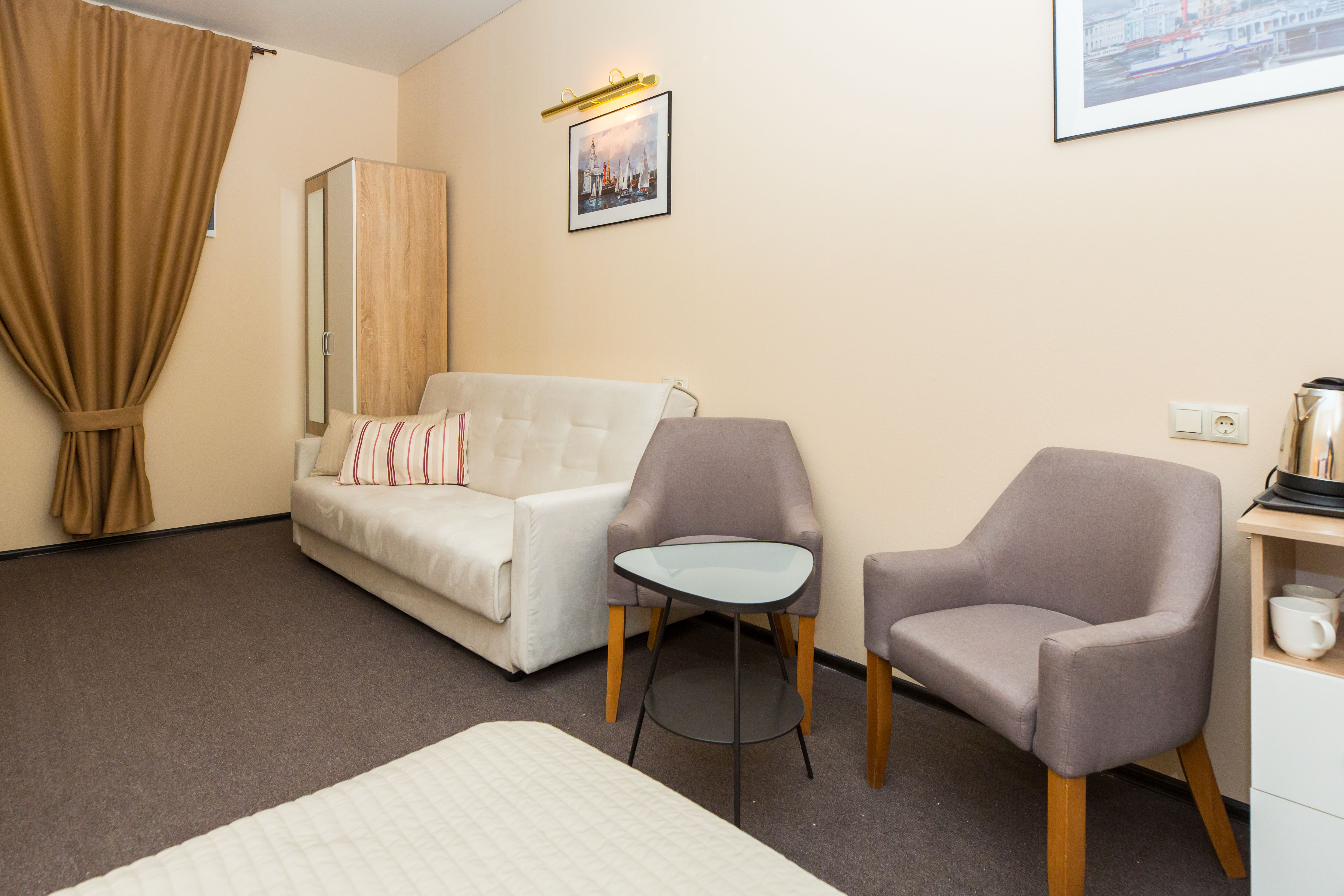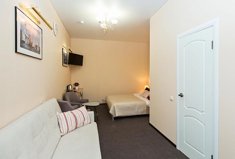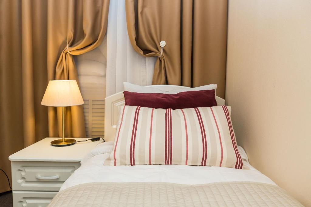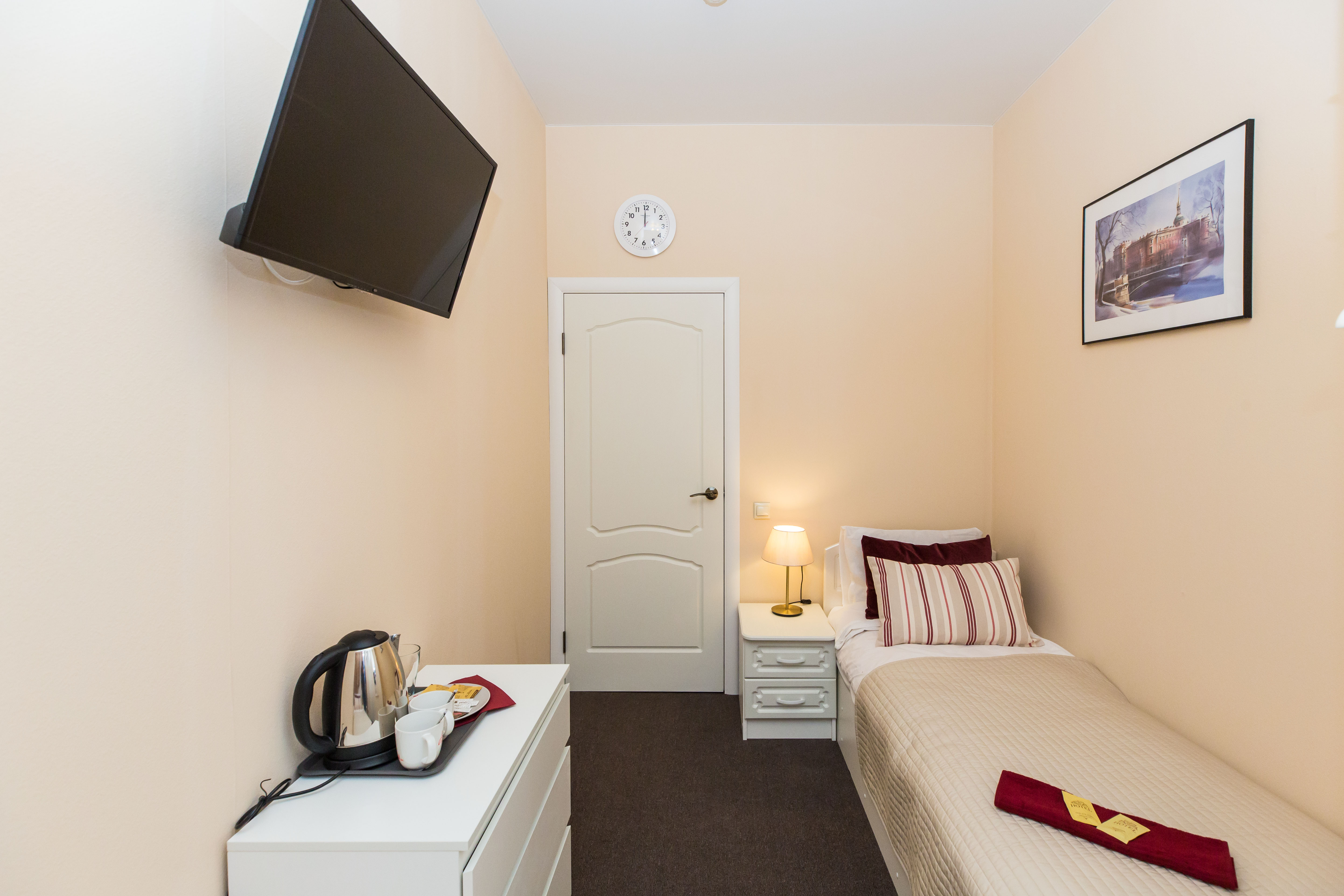 Администрация в отеле присутствует не постоянно, попасть в отель можно с помощью кодового замка, что без проблем позволяет заселиться даже в позднее время. Гостей ожидают небольшие двухместные номера, выдержанные в классической пастельной гамме с использованием благородных бордовых оттенков. В каждом номере имеется индивидуальный санузел с душем, фен, плазменный телевизор и электрочайник. В холле отеля установлены кулер с водой и микроволновая печь.Всем гостям доступен беспроводной интернет, автовладельцы при наличии свободных мест могут оставить машину на парковке во внутреннем дворике.