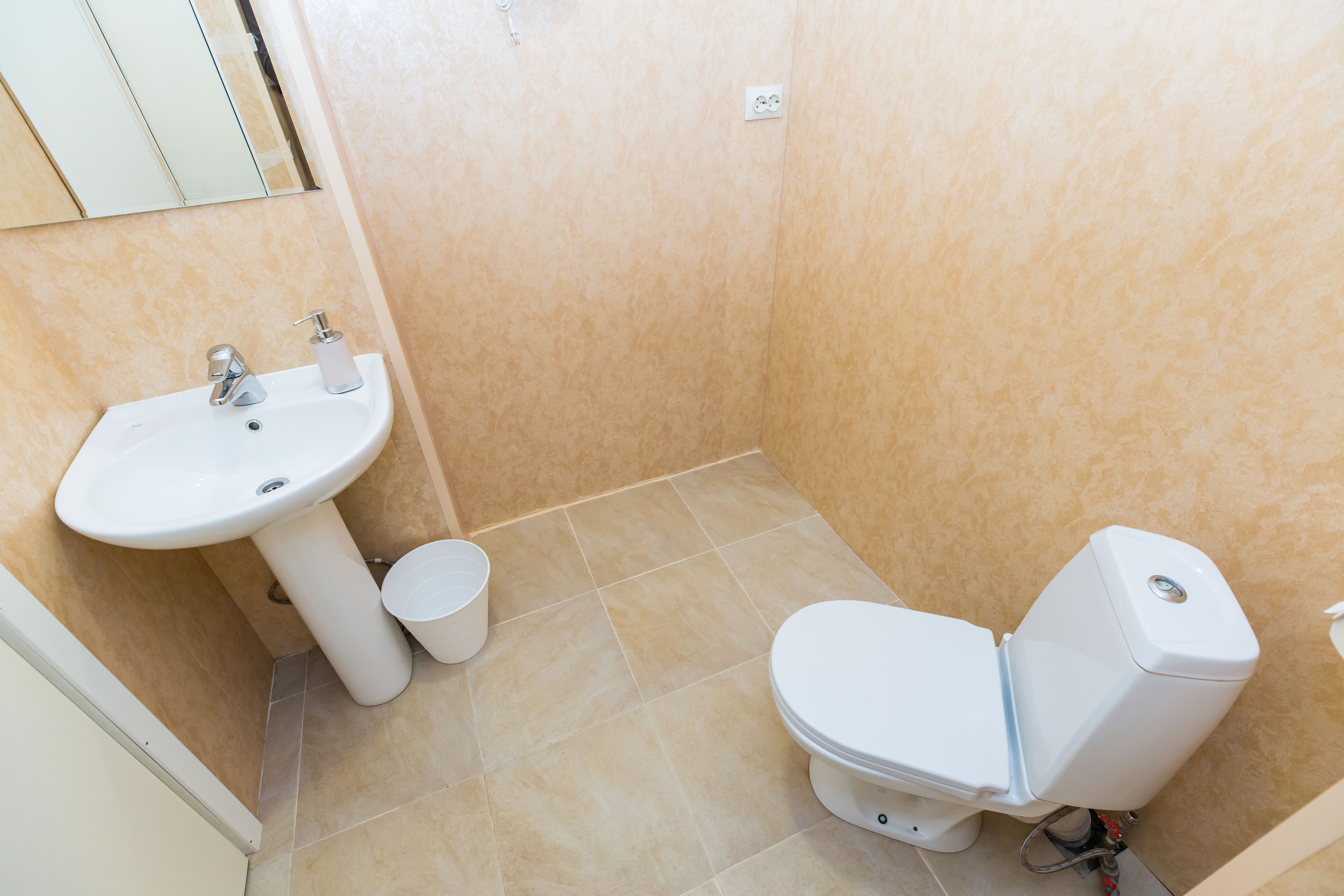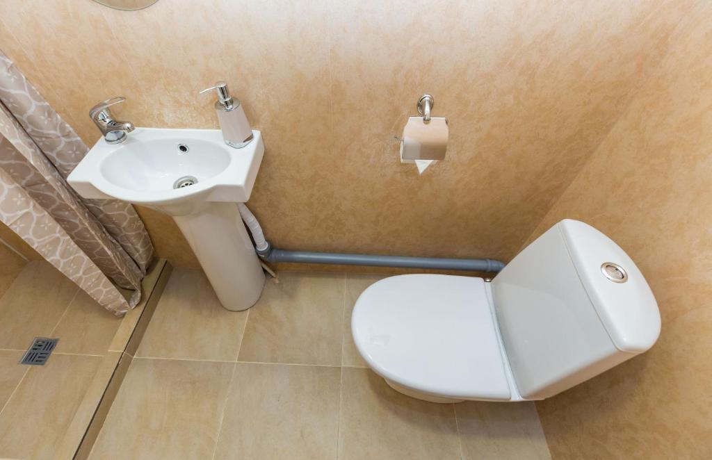Санузел: с душем, тапочки, туалетные принадлежности, фен