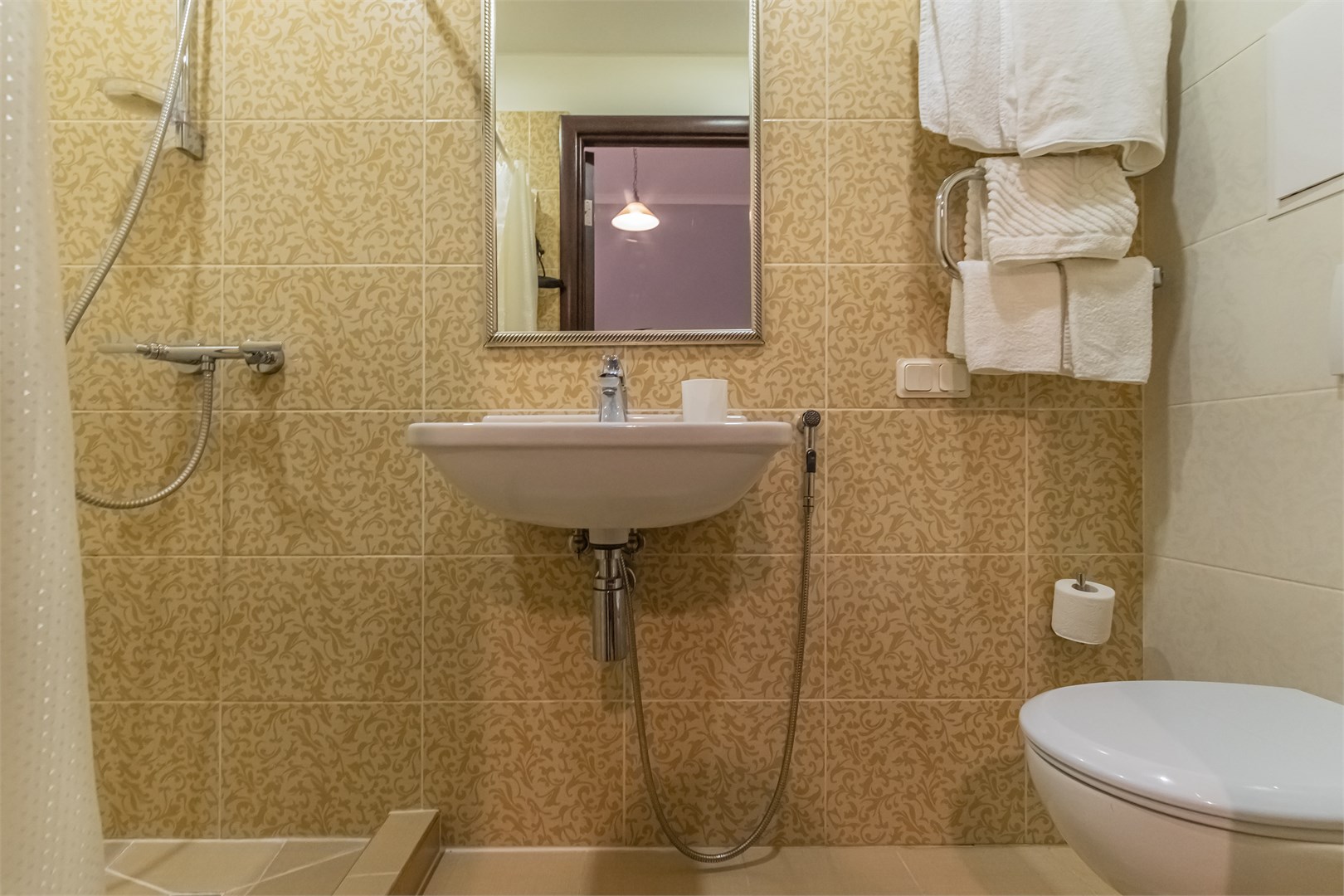 Санузел: с душем, туалетные принадлежности, фен