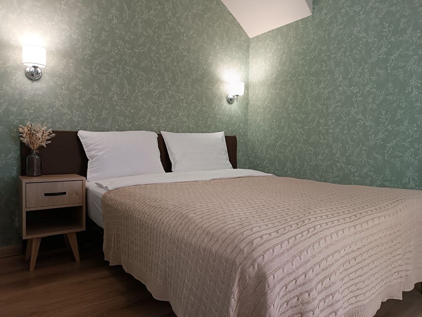 метров включает в себя уютную спальню с двуспальной кроватью шириной 140 см.Просторная спальня-гостиная площадью 30 кв. метров оборудована двуспальной кроватью (160 см) и раскладным диваном размером 160 * 200 см.Кроме того, имеется кухня-столовая площадью 18 кв. метров с большим столом, рассчитанным на шесть человек.На компактной кухне установлены холодильник, посудомоечная машина, микроволновая печь, чайник, индукционная плита, а также есть вся необходимая посуда для готовки и сервировки. Также к вашим услугам гардеробная, стиральная машина, сушилка и утюг.В совмещенном санузле есть все необходимое для гигиенических процедур: жидкое мыло, шампунь, гель для душа, косметические средства для женщин и зубные наборы.