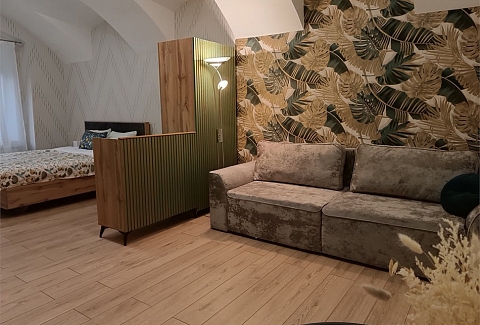 метров включает в себя уютную спальню с двуспальной кроватью шириной 140 см.Просторная спальня-гостиная площадью 30 кв. метров оборудована двуспальной кроватью (160 см) и раскладным диваном размером 160 * 200 см.Кроме того, имеется кухня-столовая площадью 18 кв. метров с большим столом, рассчитанным на шесть человек.На компактной кухне установлены холодильник, посудомоечная машина, микроволновая печь, чайник, индукционная плита, а также есть вся необходимая посуда для готовки и сервировки. Также к вашим услугам гардеробная, стиральная машина, сушилка и утюг.В совмещенном санузле есть все необходимое для гигиенических процедур: жидкое мыло, шампунь, гель для душа, косметические средства для женщин и зубные наборы.