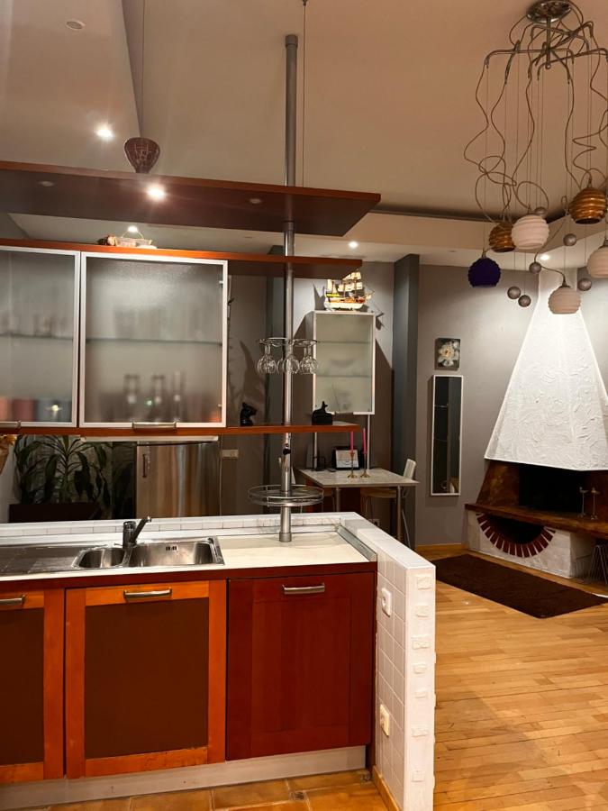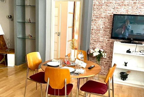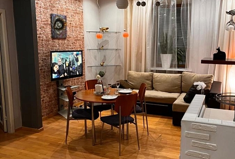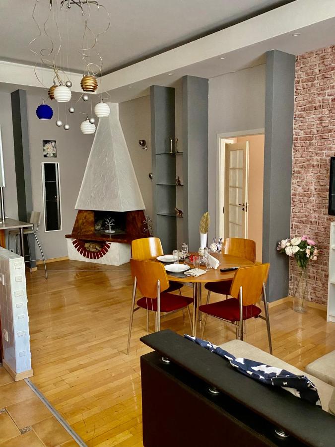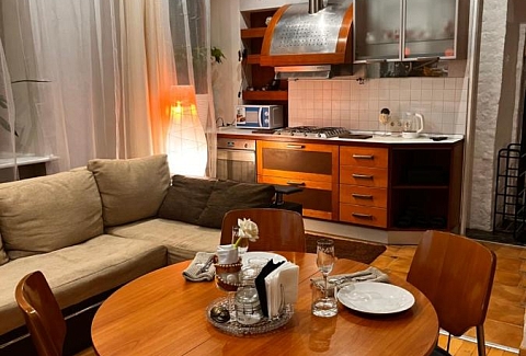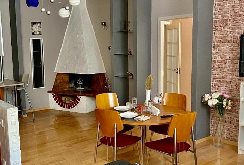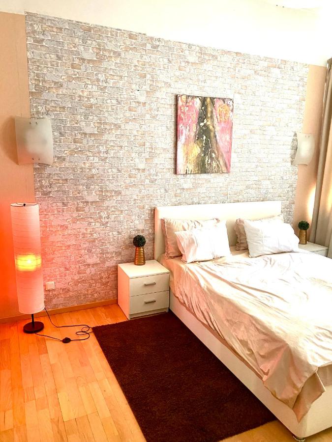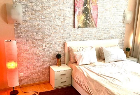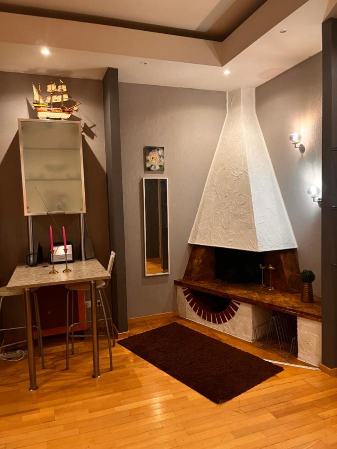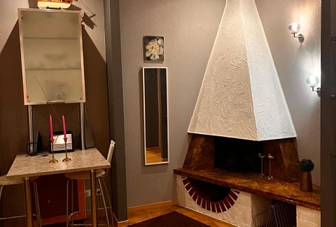 Расстояние до аэропорта составляет 25 километров. Апартаменты находятся в 5-этажном жилом доме. В распоряжении гостей спальня, кухня-гостиная и санузел. В комнате установлена кровать для сна, прикроватные тумбочки, шкаф, телевизор. Санузел с ванной, для гостей предоставлены косметические принадлежности. На кухне есть вся необходимая бытовая техника: посудомоечная и стиральная машины, холодильник, плита, микроволновая печь, электрический чайник, кофемашина. В гостиной зоне установлены раскладной диван и камин. Постояльцы могут оставить свой личный транспорт на парковке возле дома.