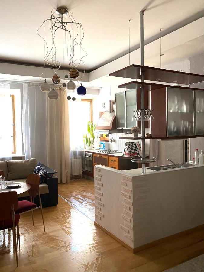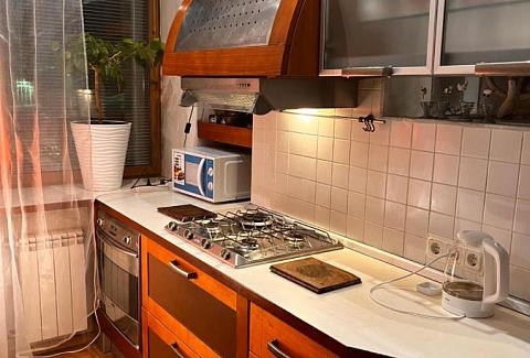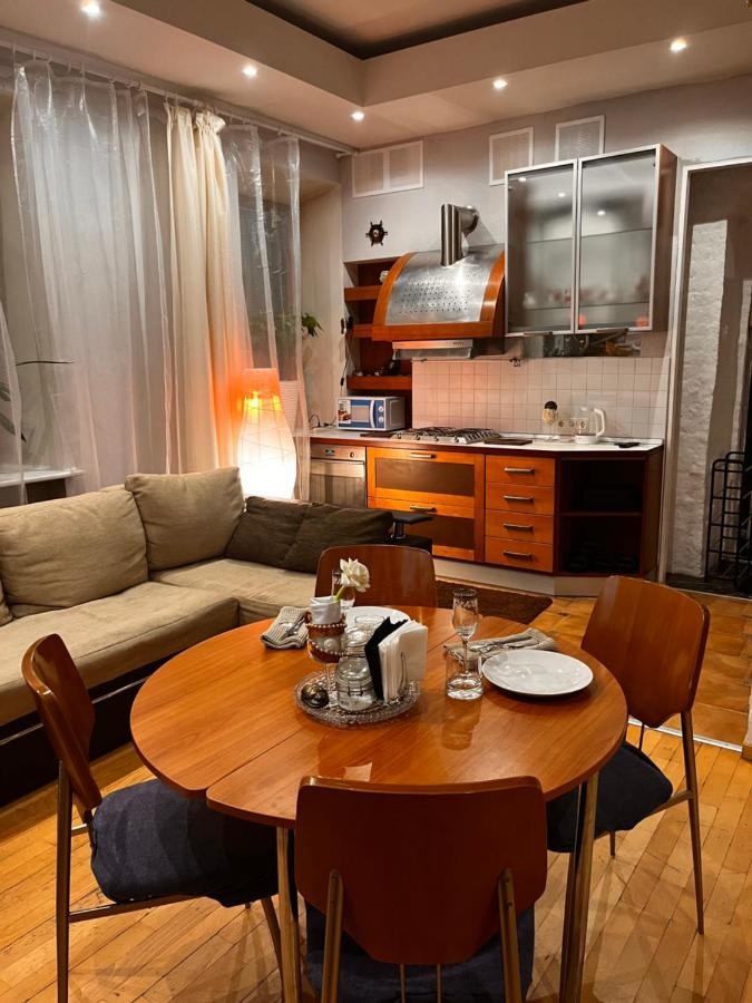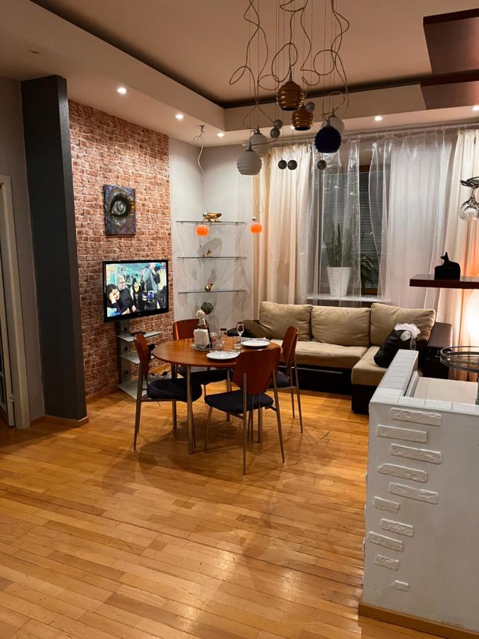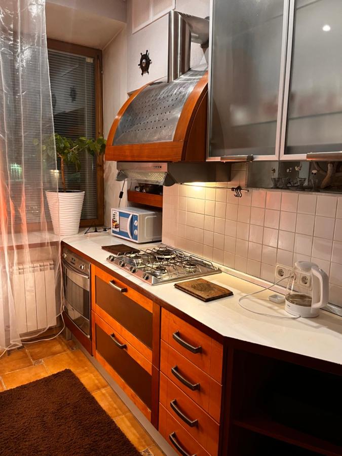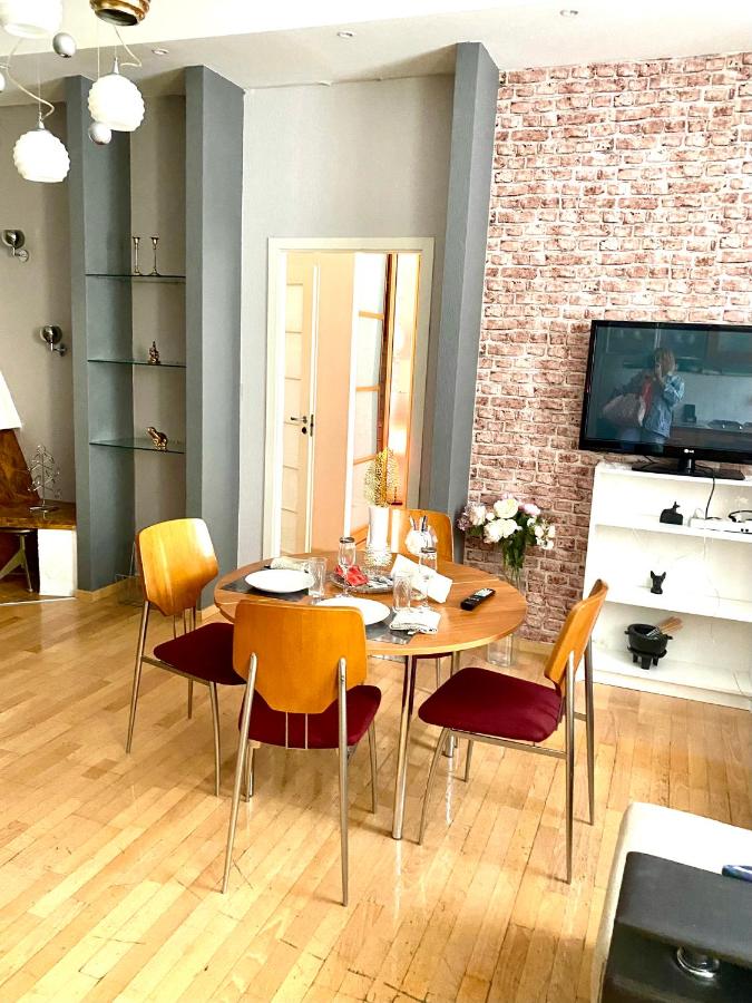 Расстояние до аэропорта составляет 25 километров. Апартаменты находятся в 5-этажном жилом доме. В распоряжении гостей спальня, кухня-гостиная и санузел. В комнате установлена кровать для сна, прикроватные тумбочки, шкаф, телевизор. Санузел с ванной, для гостей предоставлены косметические принадлежности. На кухне есть вся необходимая бытовая техника: посудомоечная и стиральная машины, холодильник, плита, микроволновая печь, электрический чайник, кофемашина. В гостиной зоне установлены раскладной диван и камин. Постояльцы могут оставить свой личный транспорт на парковке возле дома.