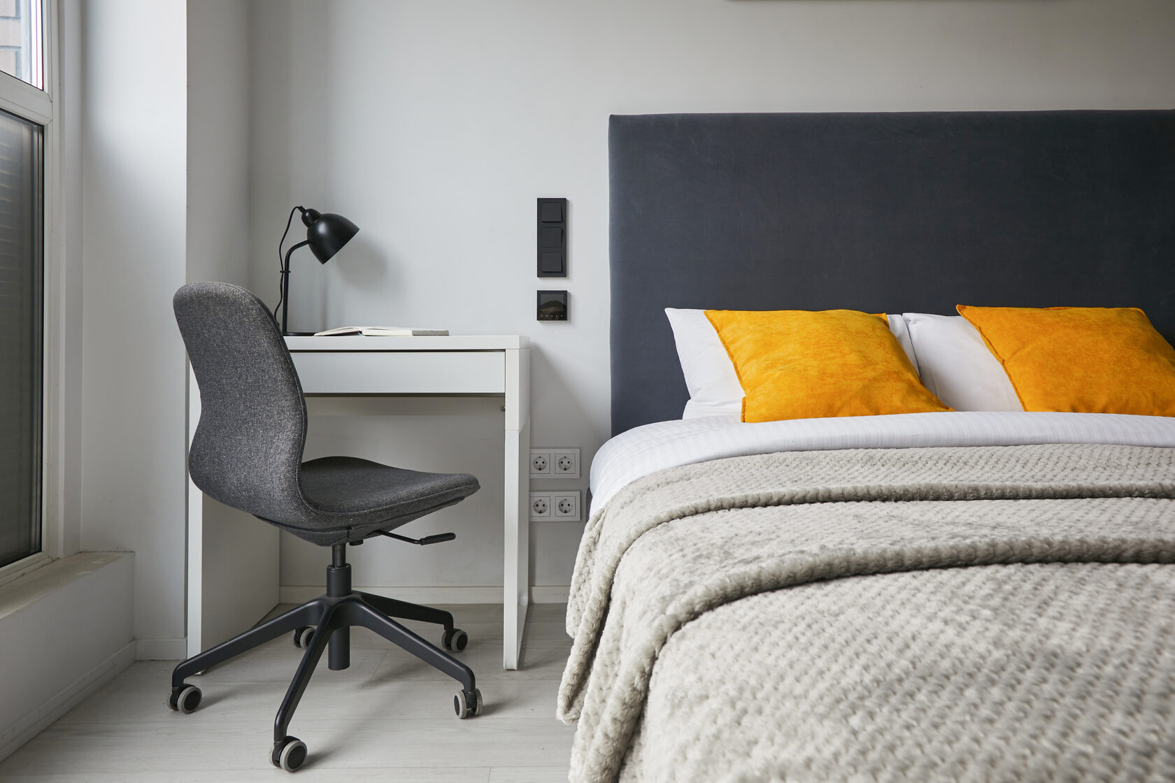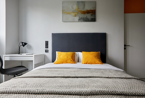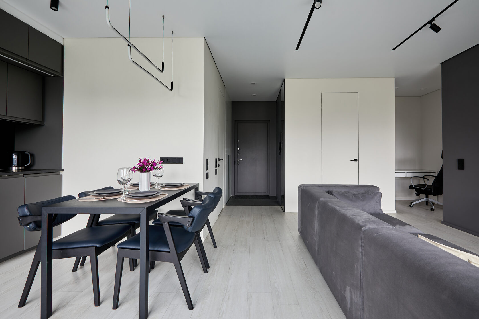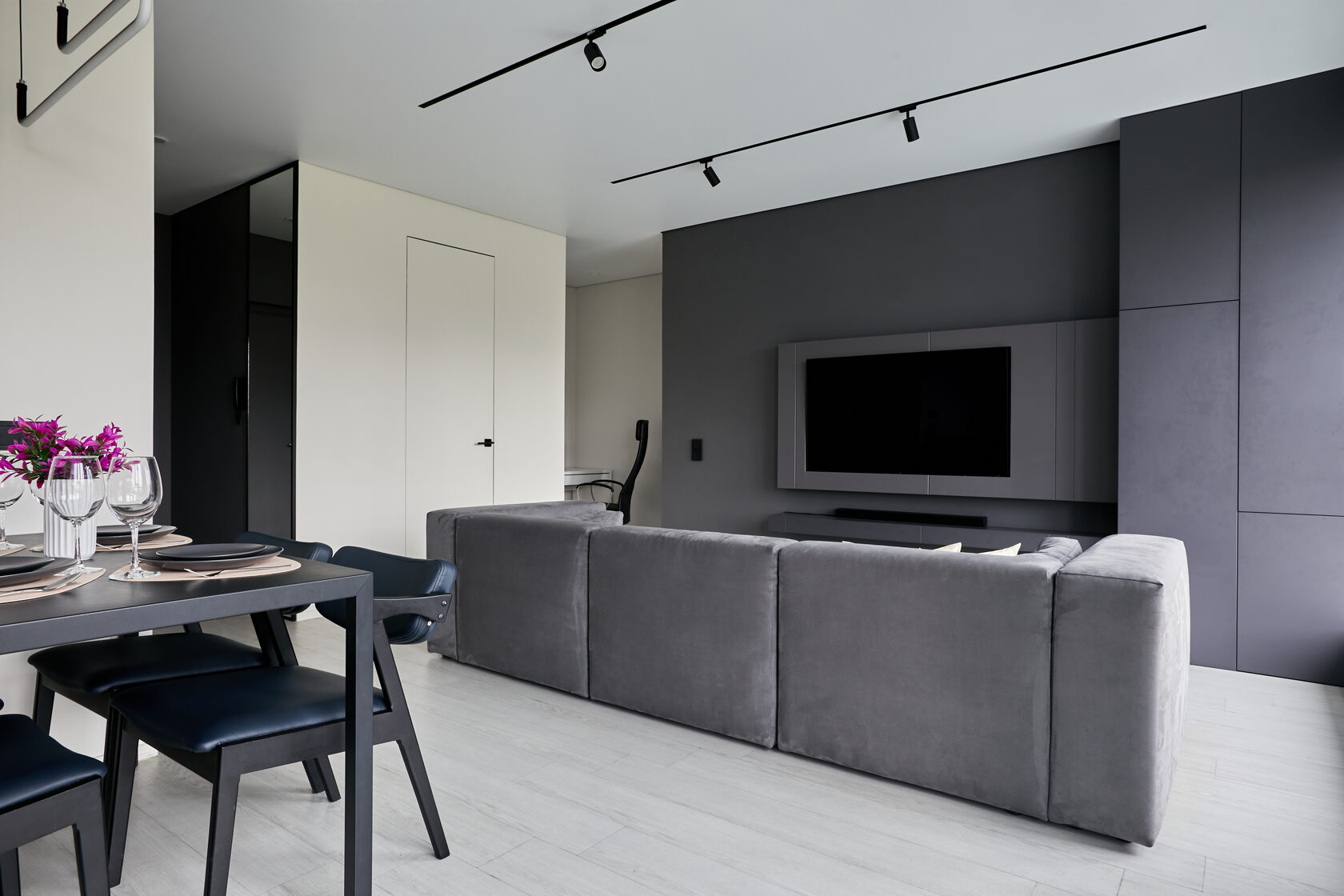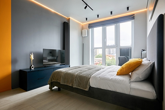 Обустроены вместительные парковки. На первом этаже работают магазины и кафе.Изолированная спальня предусмотрена для размещения 4 гостей: установлены двуспальная и двухъярусная кровати. Просторная кухня-гостиная располагает функциональной зоной для приготовления еды, посудомоечной машиной, обеденной группой со столом и мягкими стульями, большим раскладным диваном. Оснащена отдельная гардеробная комната с полками для вещей и стиральной машиной. Санузел совмещен с душевой. Можно подключиться к Wi-Fi. По запросу предоставляются детский манеж, стульчик для кормления, горшок.