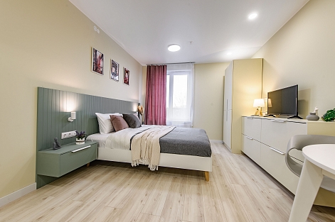 Комплекс апартаментов «ApartMe» расположен в зеленом спальном районе Санкт-Петербурга. В окрестностях находятся место дуэли Александра Пушкина, Салтыковский сад, Строгановский парк, Ушаковская набережная. От ближайшей станции метро «Черная речка» до центра Северной столицы всего 3 остановки без пересадок.Апартаменты размещены в современном здании с парковкой.