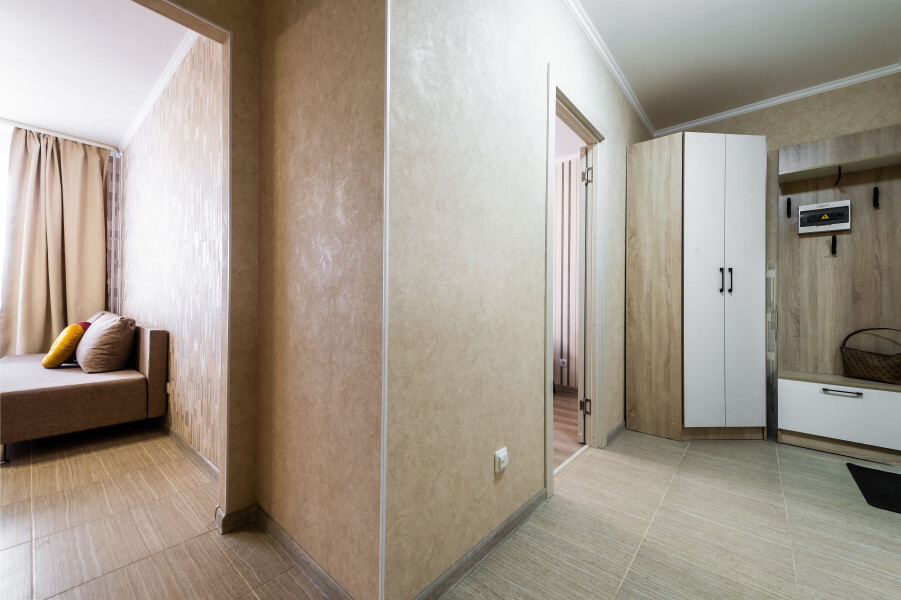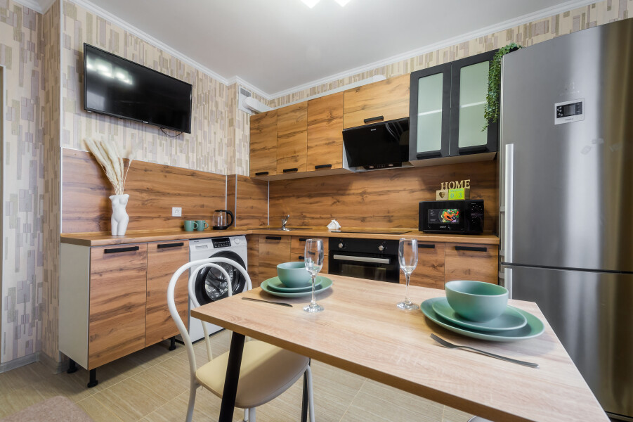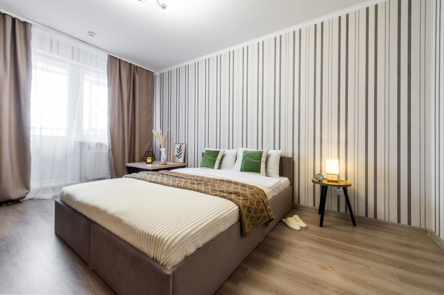 Современные апартаменты сочетает в себе стиль и функциональность, создавая атмосферу, где каждый гость сможет расслабиться и насладиться временем вдали от дома. Вся необходимая бытовая техника и необходимый набор посуды. По два полотенца для каждого гостя, одноразовые средства личной гигиены, одноразовые тапочки, качественный ортопедический матрас.Апартаменты расположены в тихом районе с развитой инфраструктурой, рядом магазины, супермаркеты, кафе и рестораны.Общественная парковка рядом с домом сделают пребывание еще более комфортным.