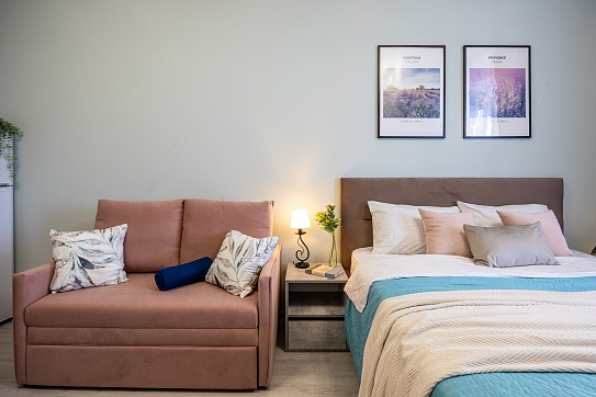 Апартаменты расположены в южной части Санкт-Петербурга рядом с железнодорожной станцией «Фарфоровская». В шаговой доступности остановки наземного транспорта, до ближайшей станции метро «Ломоносовская» – 15 минут пешком. Рядом – Ивановский карьер с садом, парк им.