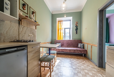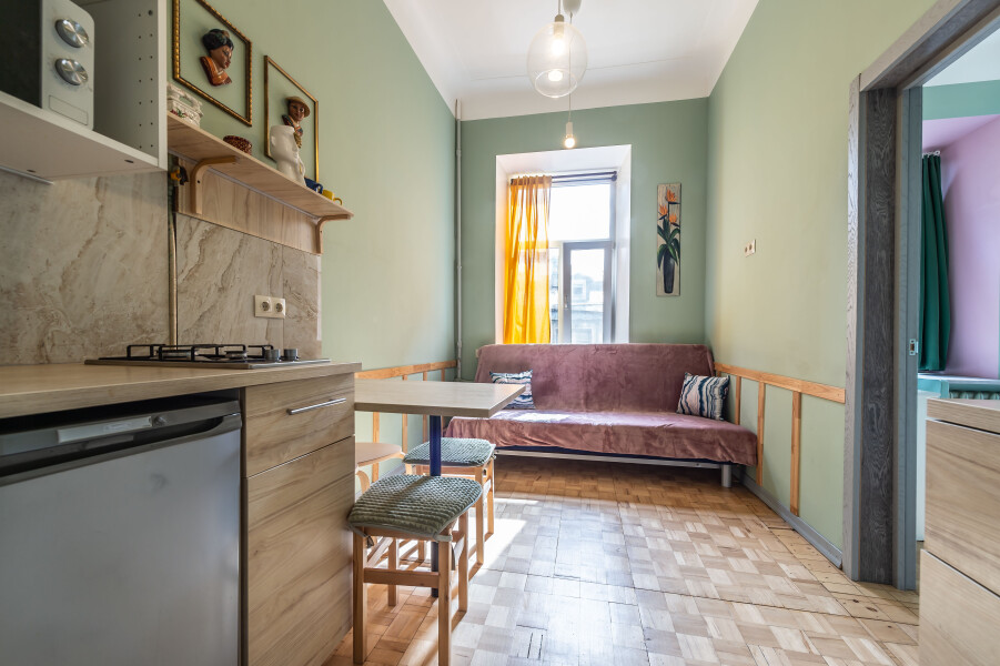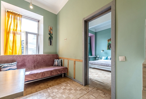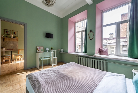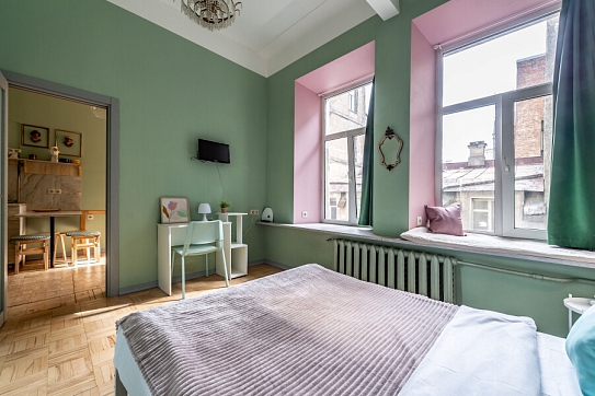 Поездом до ж/д вокзала Московский, далее на метро до станции «Невский проспект», далее 1,43 км до апартаментов.