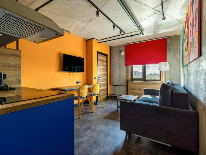 В ванной комнате имеется современная сантехника, фен и туалетные принадлежности.Кухня оборудована холодильником, вытяжкой, электрическим чайником, микроволновой печью и плитой. В окрестностях вы найдёте широкий выбор ресторанов и кафе на любой вкус.Недалеко находятся парк Городов-Героев, ТЦ Торговый Двор и Московский парк Победы. Аэропорт Пулково-2 находится в 4.7 км, а Балтийский вокзал – в 7.3 км.