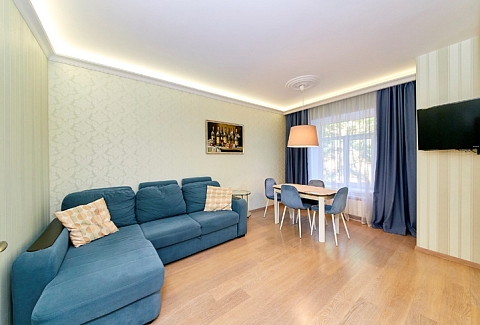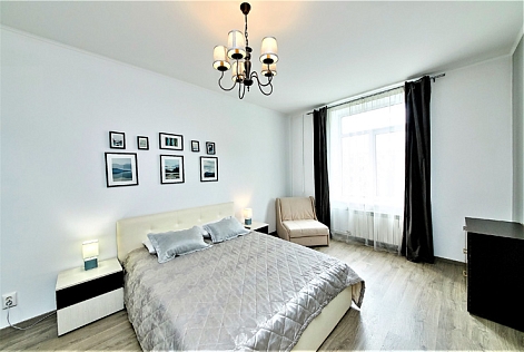 В номере: вешалка, диван раскладной, зеркало, комод, кресло-кровать, кровать полутороспальная, прикроватные тумбочки, стол, стулья, шкаф, духовой шкаф, микроволновая печь, мини-холодильник, набор посуды, плита электрическая, стиральная машина, телевизор, электрочайник