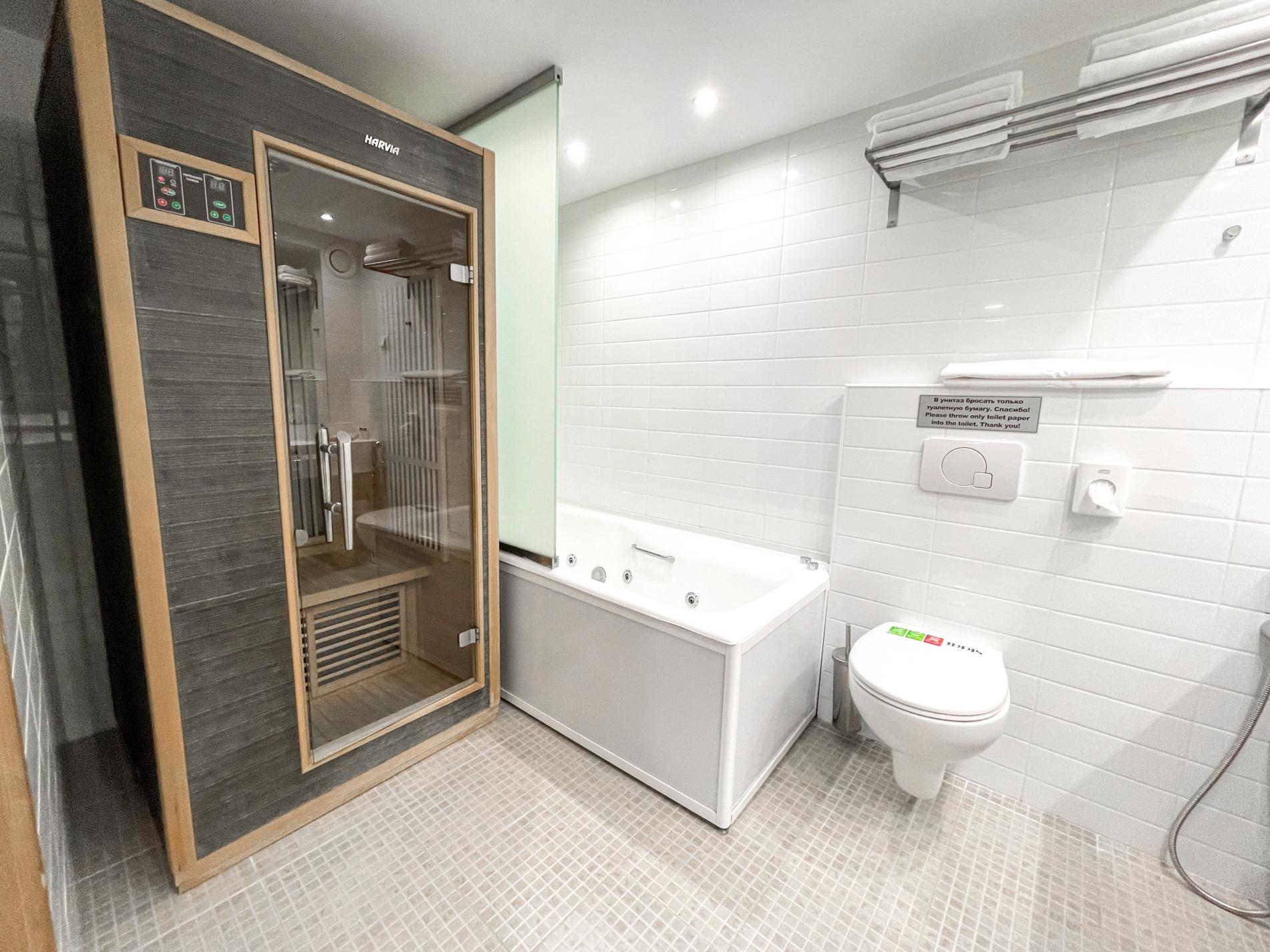 Санузел: сауна, с душевой кабиной, тапочки, туалетные принадлежности, фен, халат