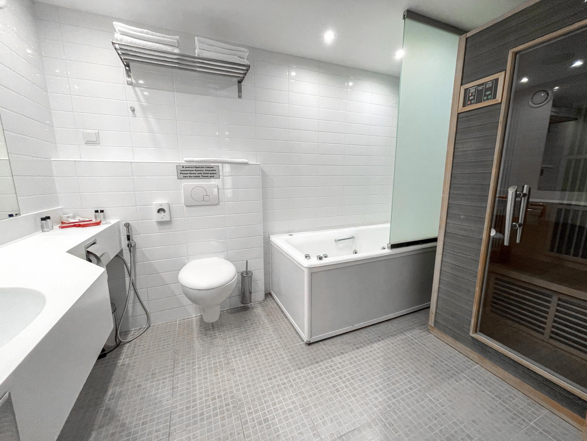 Санузел: 2 санузла, сауна, с джакузи, тапочки, туалетные принадлежности, фен, халат