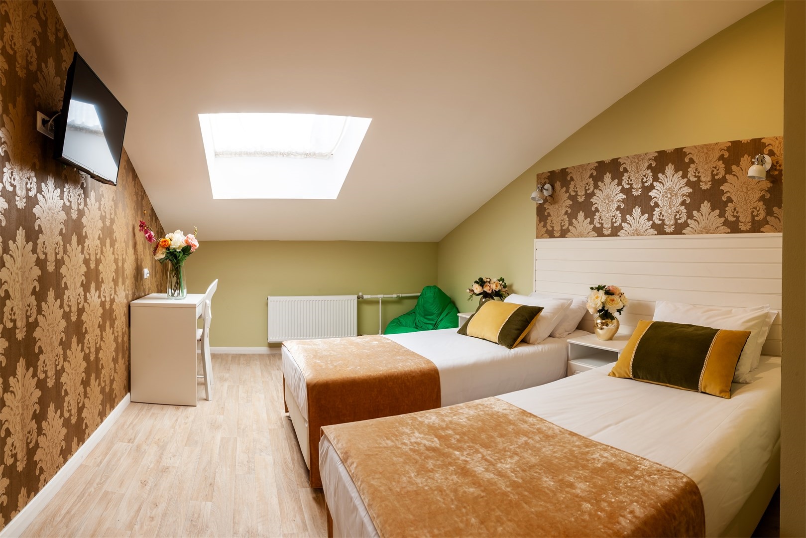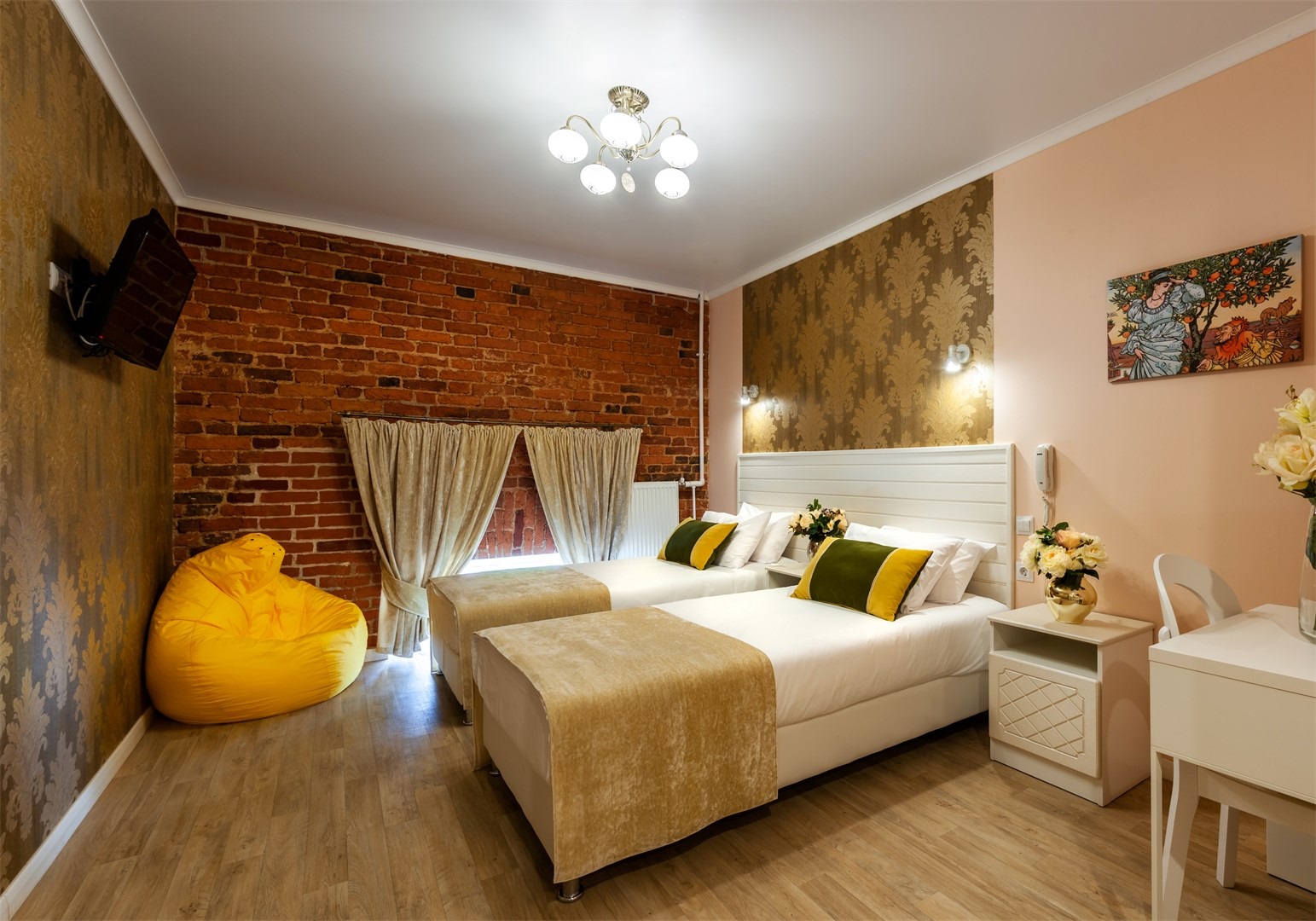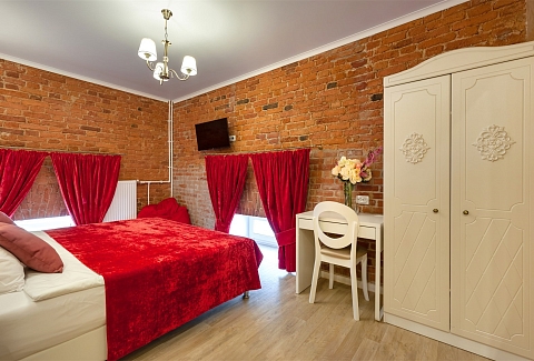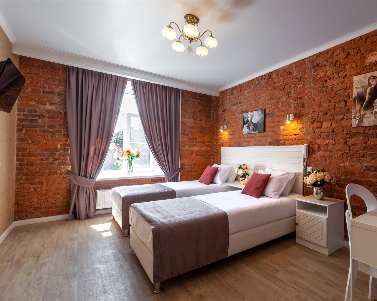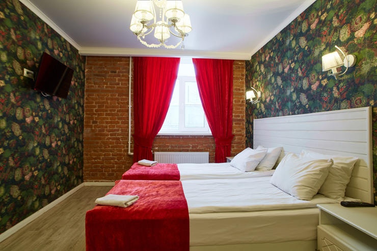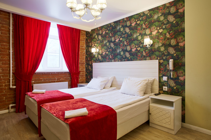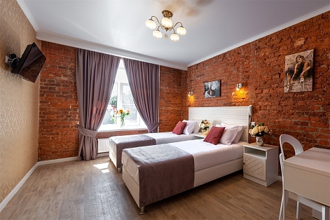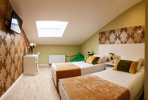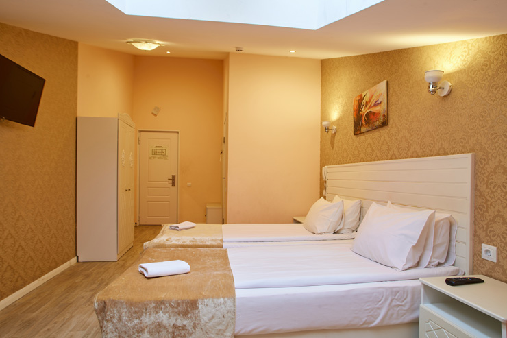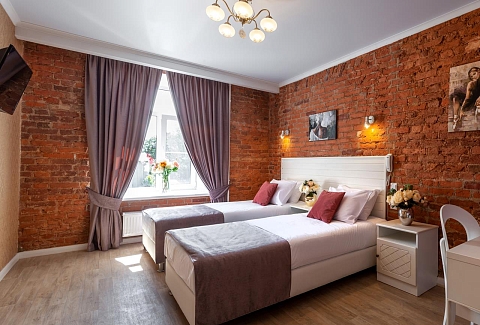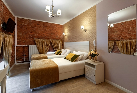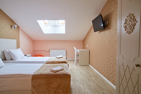 В номере: вешалка, кровати односпальные /одна двуспальная кровать, прикроватные тумбочки, стол, стулья, шкаф, мини-холодильник, телевизор ЖК, телефон, электрочайник