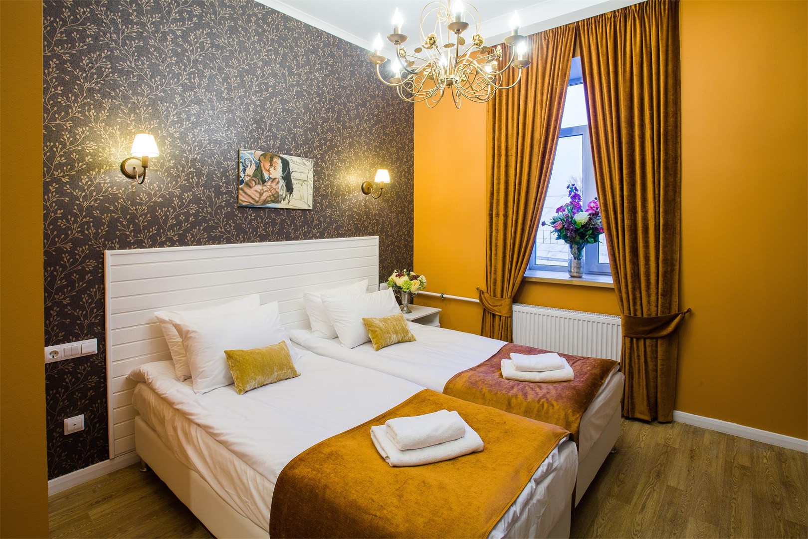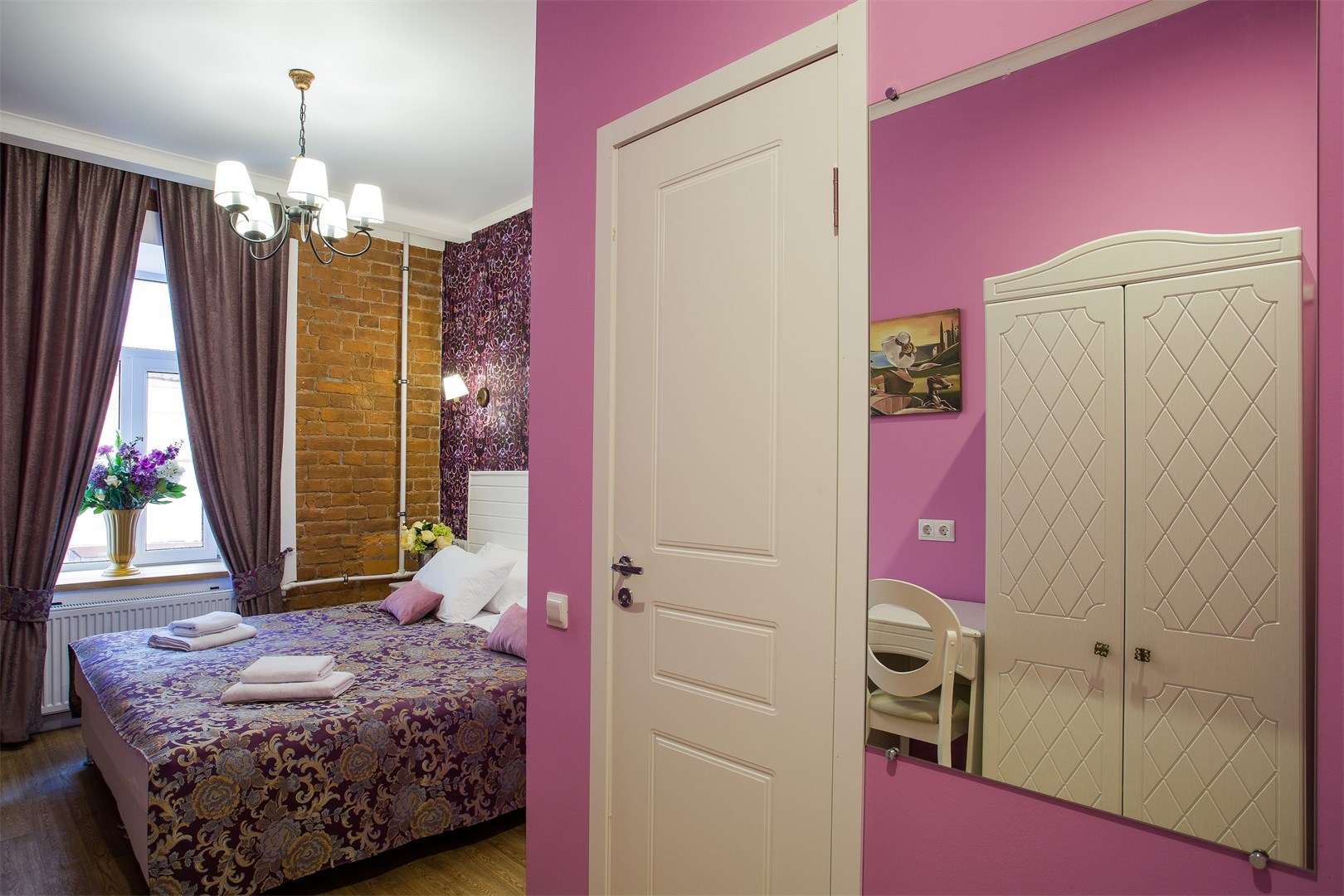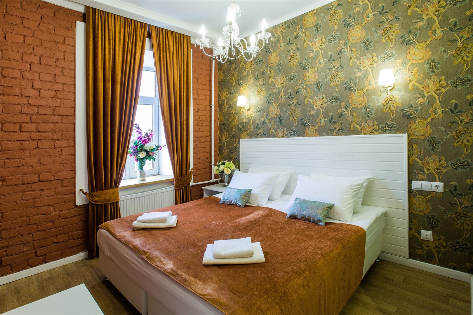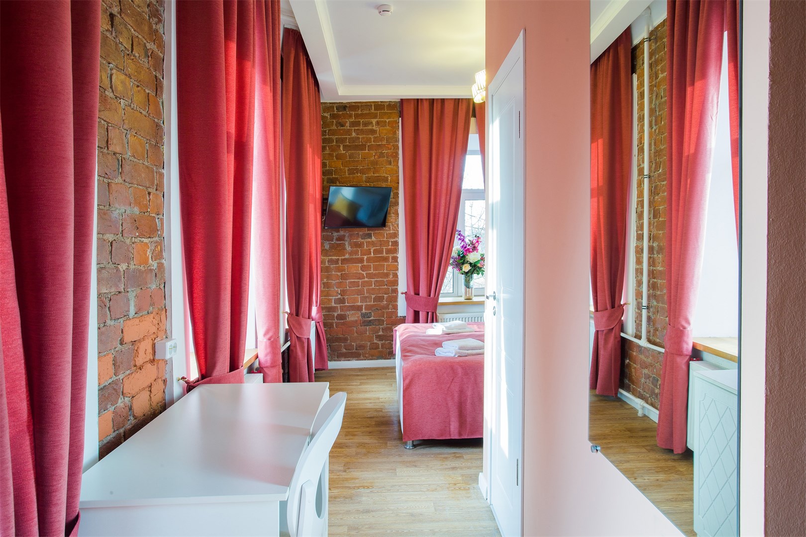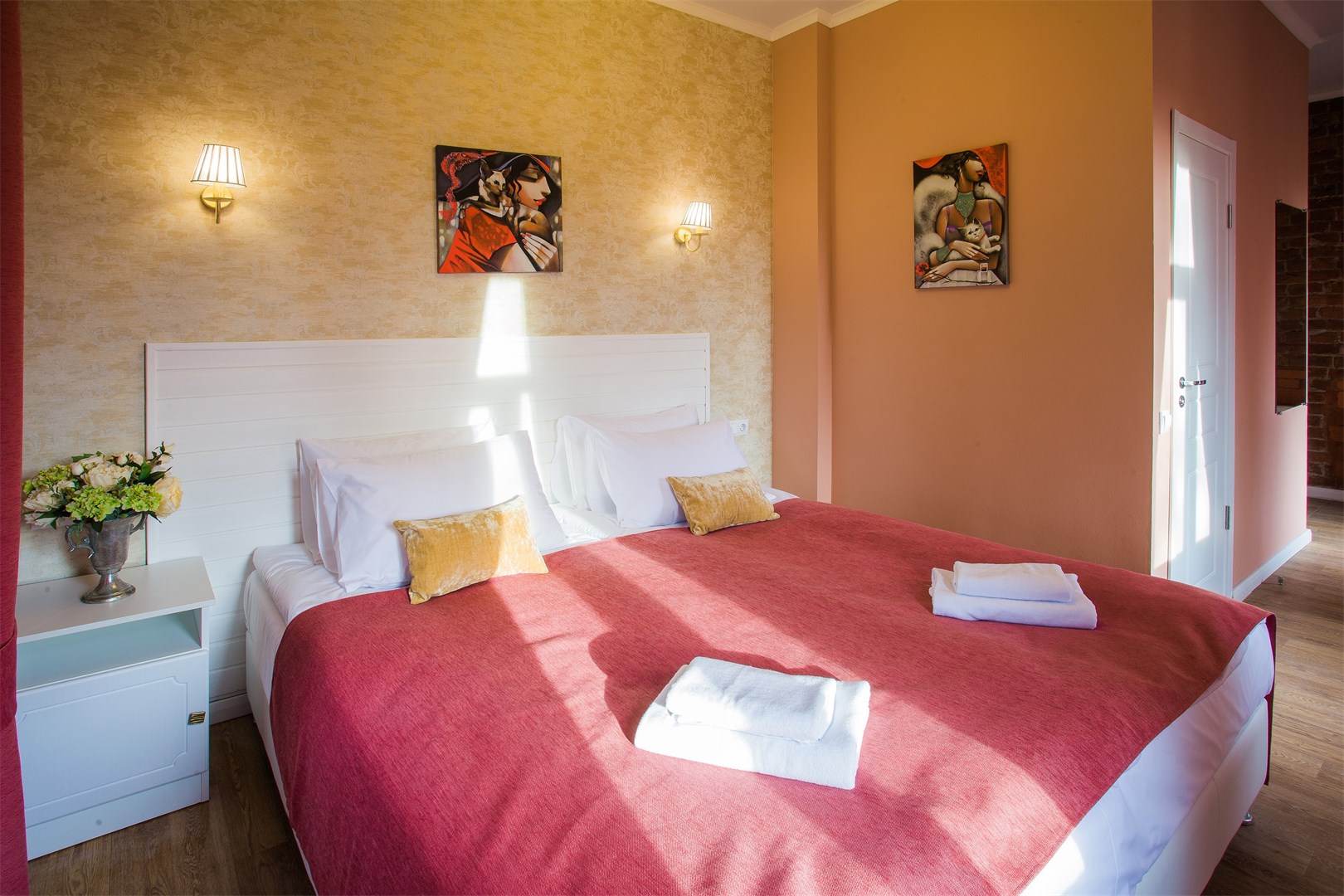 Гостей ожидают комфортабельные двухместные номера, интерьеры которых выдержаны в ярком стиле арт-деко. Все номера оснащены санузлом с душем и укомплектованы мини-холодильником и плазменным телевизором. В свободном доступе для гостей гладильная доска и утюг, так же за дополнительную оплату доступна стирка и сушка белья.В отеле работает кафе, где по утрам гостям накрывают завтраки. Также всем отдыхающим доступен беспроводной интернет и круглосуточная стойка регистрации, где можно заказать такси или приобрести экскурсии по интересным местам Петербурга.