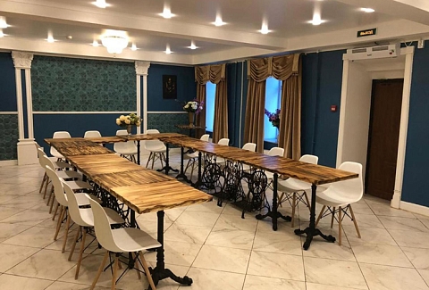 В номере: вешалка, зеркало, кровати односпальные /одна двуспальная кровать, стол, стул, тумба, шкаф, мини-холодильник, телевизор, телефон, чайная станция