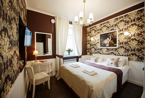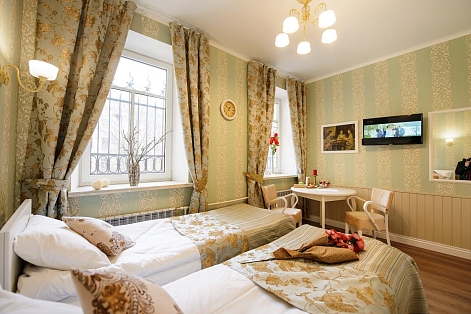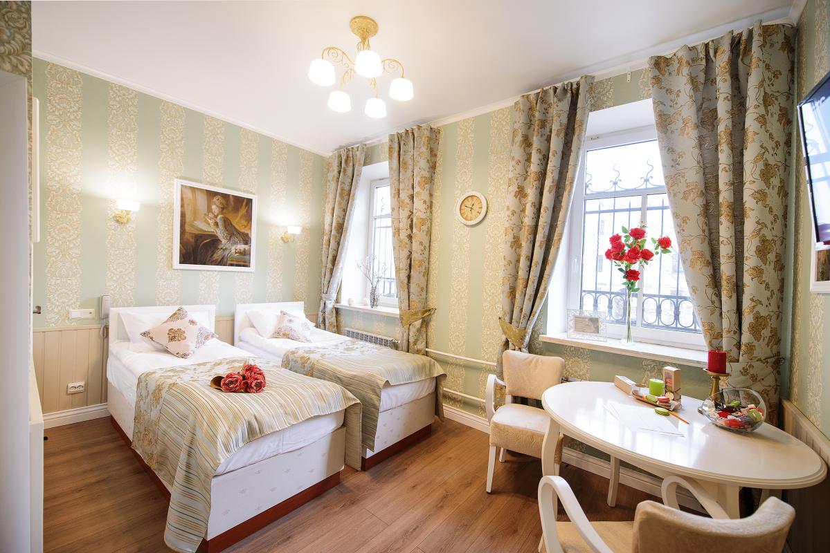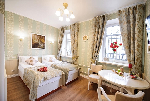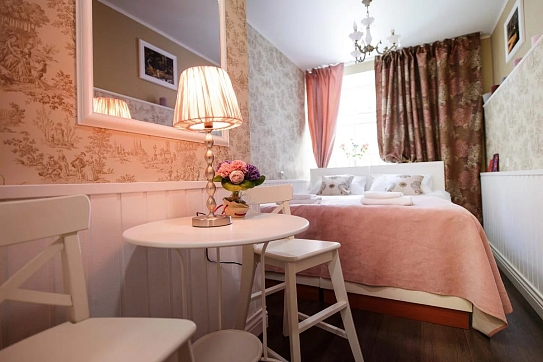 Недалеко от отеля находятся остановки общественного транспорта, магазины и кафе. Отель расположен в двухэтажном историческом здании с высоким цокольным этажом. В распоряжении гостей двухместные комфортабельные номера, оформленные в приятном стиле прованс. В комнатах есть все необходимое для отдыха: санузел с душем, фен, телевизор. В распоряжении гостей общая кухонная зона, оборудованная бытовой техникой. Также всем отдыхающим доступен беспроводной интернет на всей территории отеля и круглосуточная стойка регистрации.