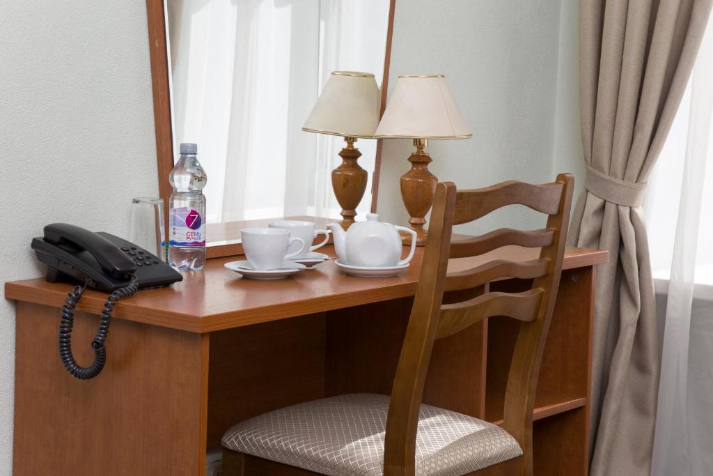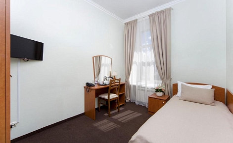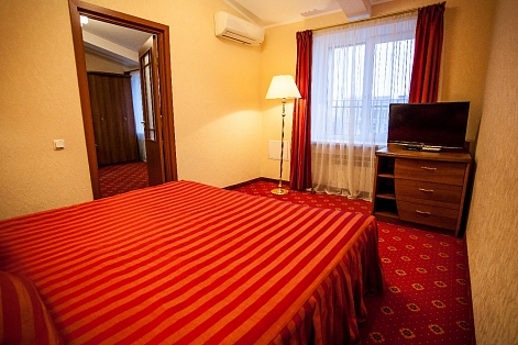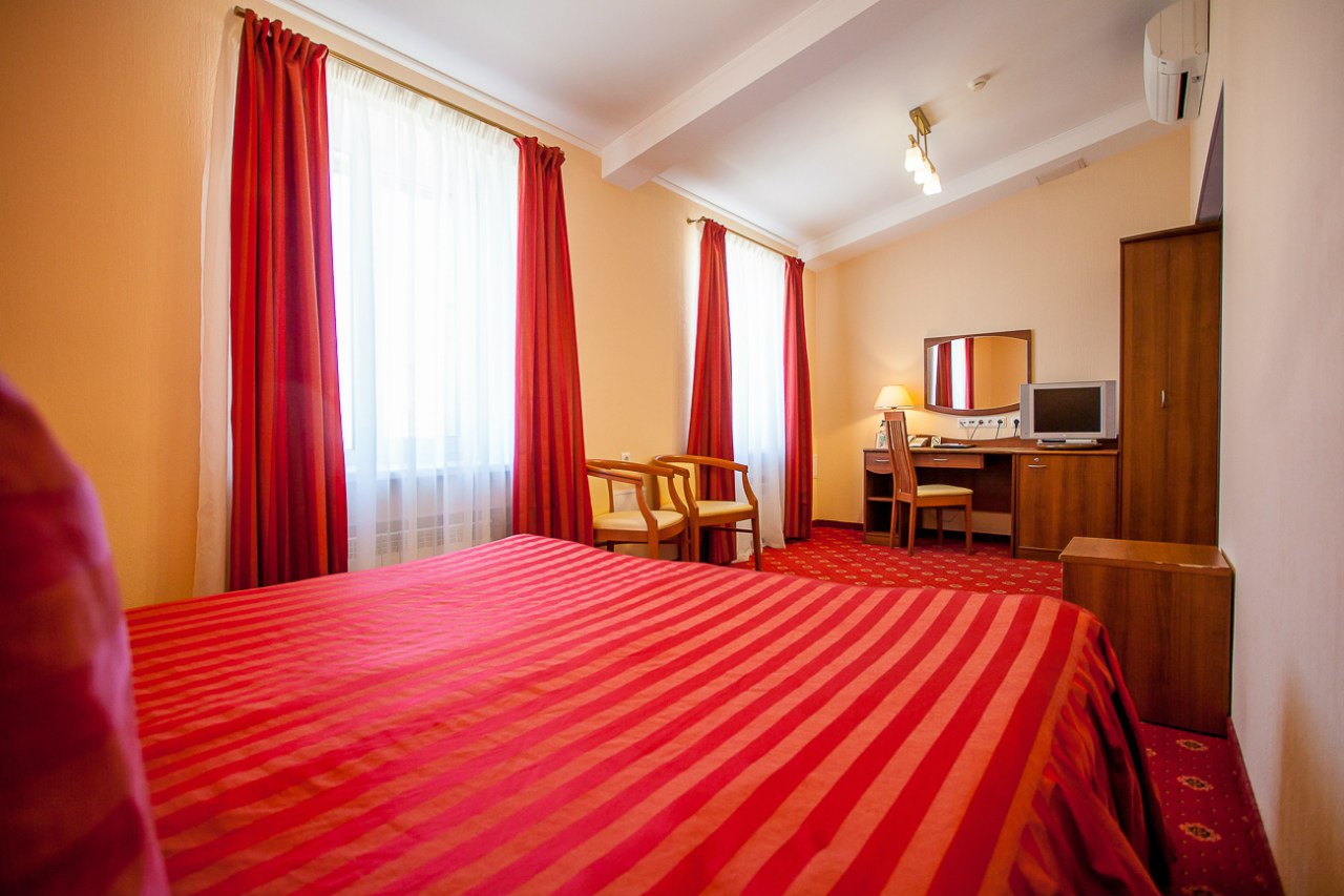 В номере: кровати односпальные /одна двуспальная кровать, стол, стулья, шкаф, кондиционер, телевизор, телефон
