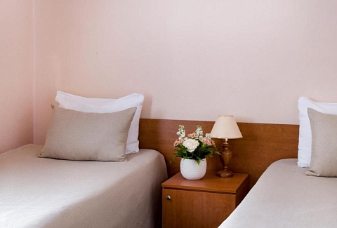 В номере: кровати односпальные, прикроватные тумбочки, шкаф, кондиционер, телевизор