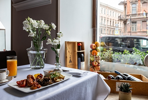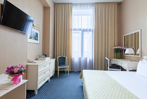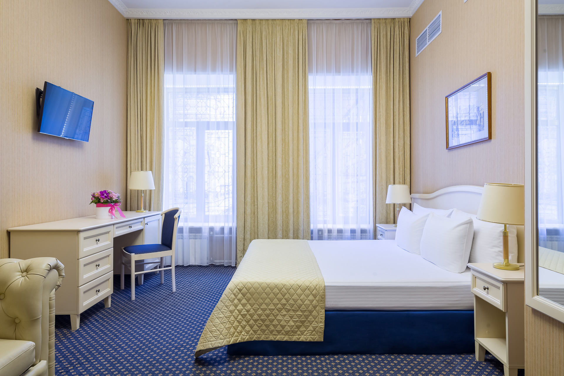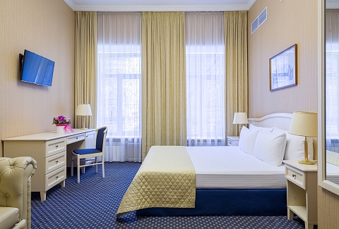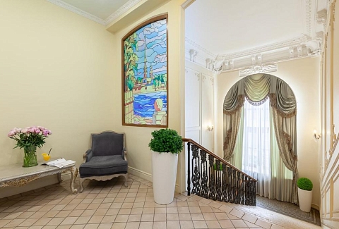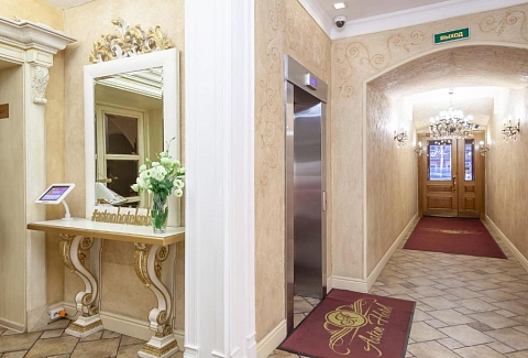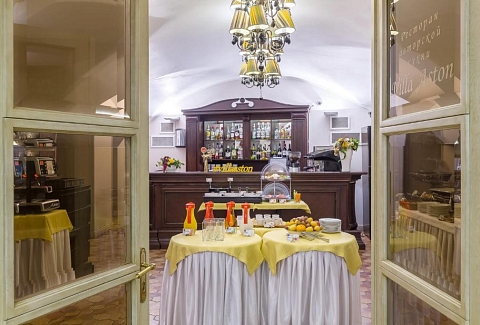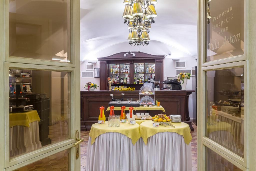 Во время реконструкции дворца итальянским архитекторам удалось сохранить лестницу 1834 года. Интерьер отеля поражает отдыхающих своей красотой и роскошью. Идеальное расположение, в центре города на Неве, в 50 метрах от Невского проспекта, позволяет постояльцам совершать пешие экскурсии по историческим местам Санкт–Петербурга. Отель располагает 40 номерами, расположен на 6 этажах. Лифт работает до 4 этажа. Все номера выполнены в светлых тонах, а безупречная чистота в номере любой категории, позволит отдыхающим получить истинное наслаждение от отдыха в этом отеле. Вниманию отдыхающих предложено несколько категорий номеров. Уровень «стандарт», площадью 17 кв.м., находящиеся на 5,6 этажах отеля. В номере «комфорт» также имеется ванная комната с бесплатными туалетными принадлежностями, феном. Улучшенный двухместный номер, площадью 24 кв.м. обеспечен бесплатными туалетными принадлежностями, феном, домашними тапочками. В номере имеется кондиционер. Номера «делюкс» оснащены кондиционером и большим диваном, где отдыхающие смогут после проведенного активного дня, просмотреть телевизор. Все номера оборудованы двуспальными и двумя односпальными кроватями, шкафами либо шкафами–купе, письменными столами, телевизорами ЖК, кондиционерами, телефонами, WiFi и Интернет зонами (бесплатно), сейфами, мини-барами. В стоимость оплаты, кроме проживания, входит питание – завтрак «шведский стол». Завтрак с 7-30 до 11-00 в ресторане «Villa Aston», где итальянские повара побалуют отдыхающих итальянской и средиземноморской кухней. В отеле можно заказать билеты на ж/д или авиарейс, в театр, на концерт, экскурсии или забронировать столик в ресторане. В отеле имеется банкомат, бизнес-центр, оказывают услуги международной и междугородней телефонной связи.