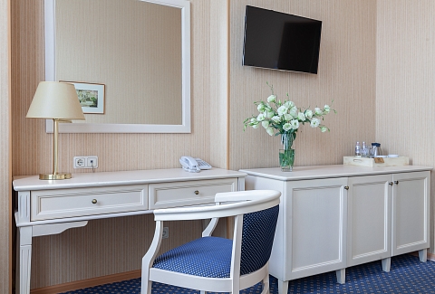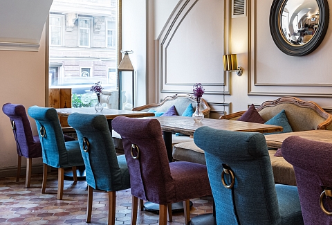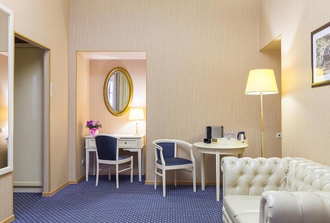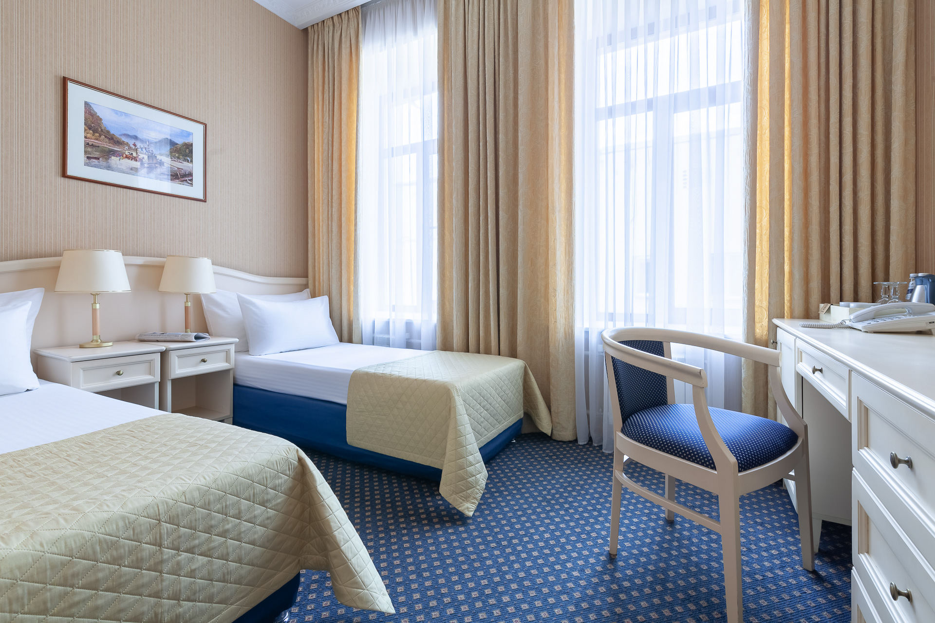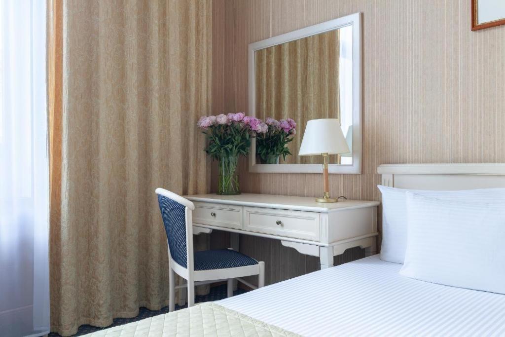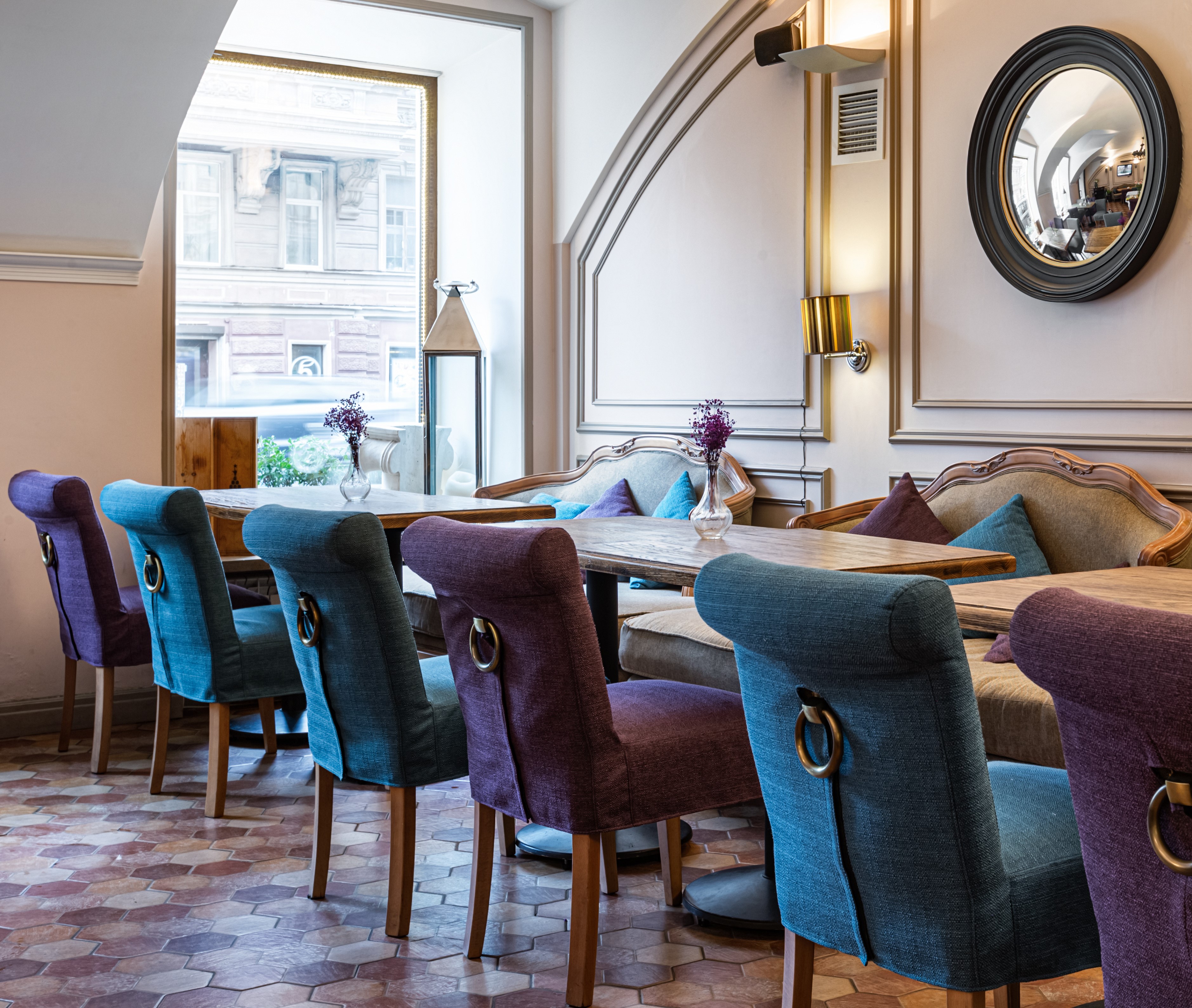 Во время реконструкции дворца итальянским архитекторам удалось сохранить лестницу 1834 года. Интерьер отеля поражает отдыхающих своей красотой и роскошью. Идеальное расположение, в центре города на Неве, в 50 метрах от Невского проспекта, позволяет постояльцам совершать пешие экскурсии по историческим местам Санкт–Петербурга. Отель располагает 40 номерами, расположен на 6 этажах. Лифт работает до 4 этажа. Все номера выполнены в светлых тонах, а безупречная чистота в номере любой категории, позволит отдыхающим получить истинное наслаждение от отдыха в этом отеле. Вниманию отдыхающих предложено несколько категорий номеров. Уровень «стандарт», площадью 17 кв.м., находящиеся на 5,6 этажах отеля. В номере «комфорт» также имеется ванная комната с бесплатными туалетными принадлежностями, феном. Улучшенный двухместный номер, площадью 24 кв.м. обеспечен бесплатными туалетными принадлежностями, феном, домашними тапочками. В номере имеется кондиционер. Номера «делюкс» оснащены кондиционером и большим диваном, где отдыхающие смогут после проведенного активного дня, просмотреть телевизор. Все номера оборудованы двуспальными и двумя односпальными кроватями, шкафами либо шкафами–купе, письменными столами, телевизорами ЖК, кондиционерами, телефонами, WiFi и Интернет зонами (бесплатно), сейфами, мини-барами. В стоимость оплаты, кроме проживания, входит питание – завтрак «шведский стол». Завтрак с 7-30 до 11-00 в ресторане «Villa Aston», где итальянские повара побалуют отдыхающих итальянской и средиземноморской кухней. В отеле можно заказать билеты на ж/д или авиарейс, в театр, на концерт, экскурсии или забронировать столик в ресторане. В отеле имеется банкомат, бизнес-центр, оказывают услуги международной и междугородней телефонной связи.