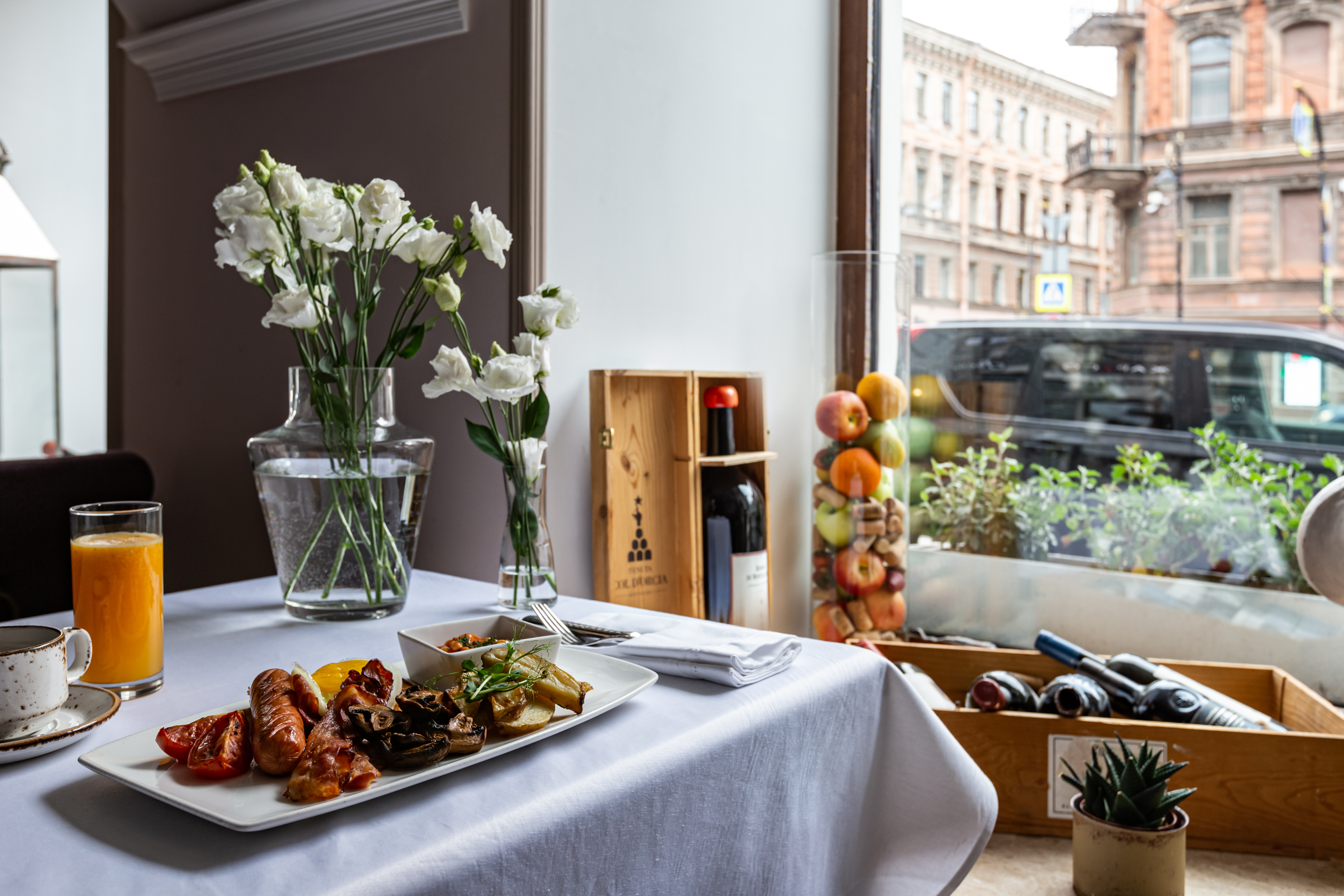 Самолетом до аэропорта Пулково, далее на рейсовом автобусе №39 до остановки «ул. Авиационная», далее на метро до станции «Технологический институт-2», далее на метро до станции «Владимирская», далее пройти пешком 510 м до отеля.