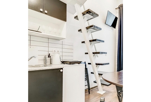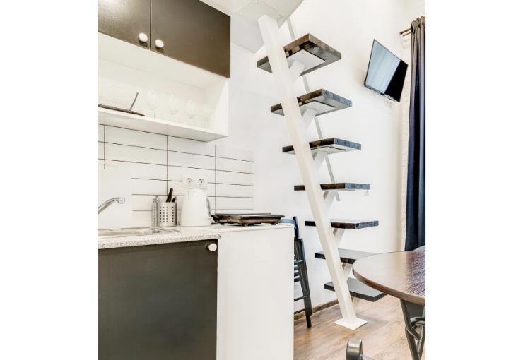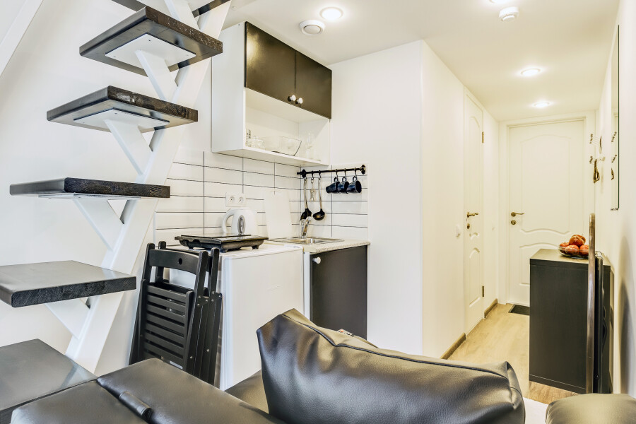 «AUF апарт на Мытнинской» предлагает комфортабельные и современные студии в самом сердце Санкт-Петербурга, рассчитанные на проживание трех гостей.В каждой студии: одноместный диван из кожи, обеденная зона со столиком, стульями и комодом, мини-кухня со всем необходимым оборудованием, холодильник, а также индивидуальная ванная комната с феном и полотенцами. На втором уровне располагается двуспальное место, вешалки для одежды и телевизор.В общем холле к услугам гостей стиральная машина, гладильная доска с утюгом, пурифайер для воды и сушилка для белья. Местоположение исключительно удобно: всего пять минут до Невского проспекта, десять минут до Московского вокзала и станции метро «Площадь Восстания», откуда легко добраться до ключевых достопримечательностей города в течение 10 минут.