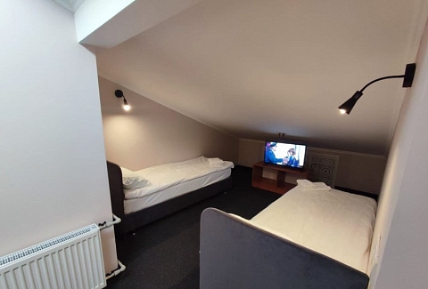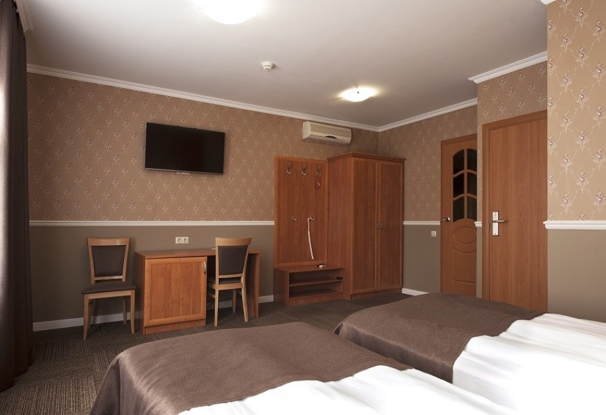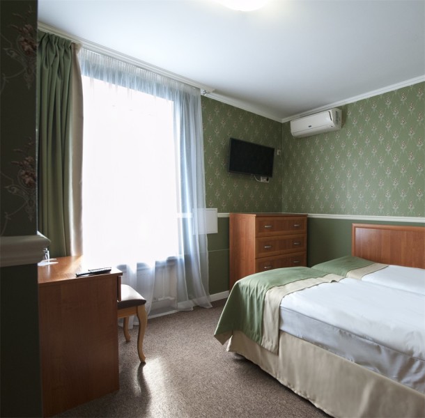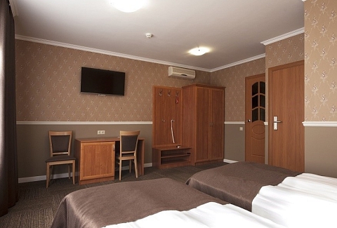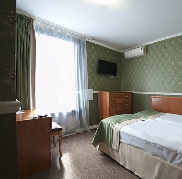 В номере: вешалка, зеркало, кровати односпальные /одна двуспальная кровать, прикроватная тумбочка, стул, шкаф, кондиционер, мини-холодильник, телевизор, утюг