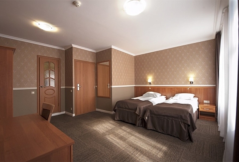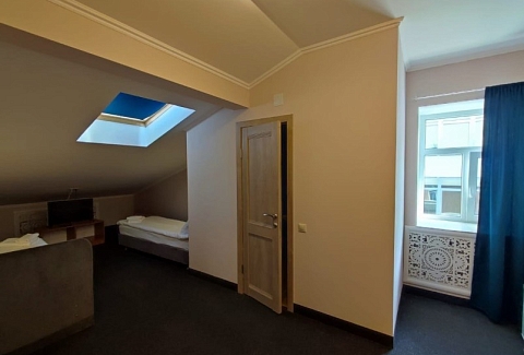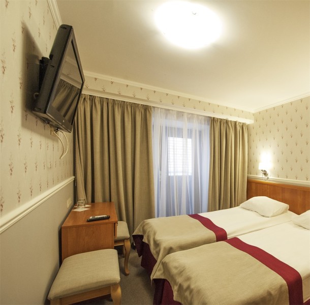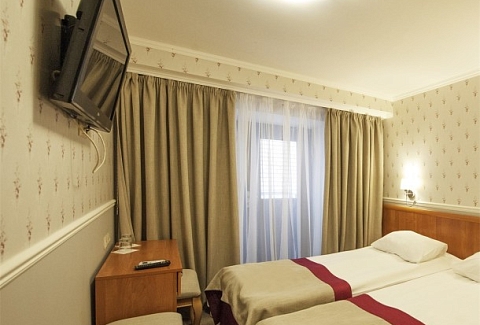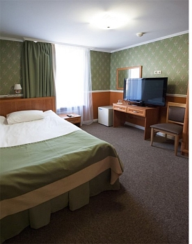 В номере: вешалка, зеркало, кровати односпальные /одна двуспальная кровать, прикроватные тумбочки, стулья, тумба багажная, шкаф, кондиционер, мини-холодильник, набор посуды, телевизор, телефон, утюг, чайная станция, электрочайник