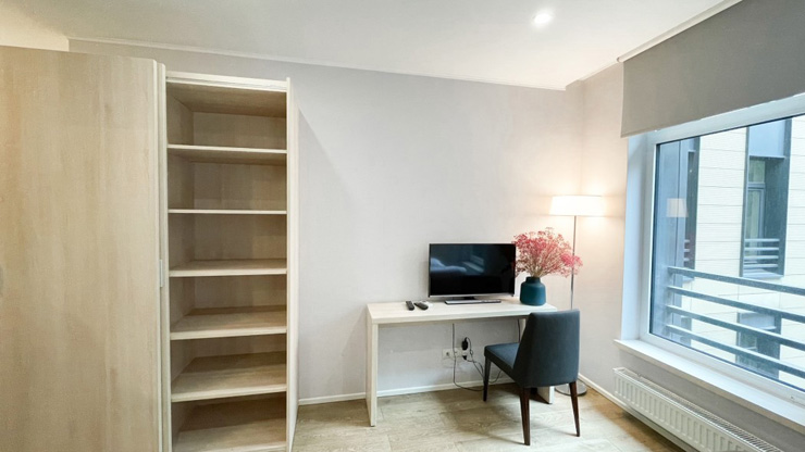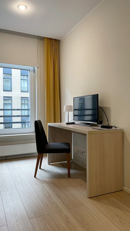 В номере: вешалка, зеркало, кресло, кровати односпальные /одна двуспальная кровать, прикроватные тумбочки, стол, столик журнальный, стул, кондиционер, микроволновая печь, мини-холодильник, набор посуды, плита электрическая, посудомоечная машина, стиральная машина, телевизор, чайная станция, электрочайник