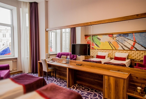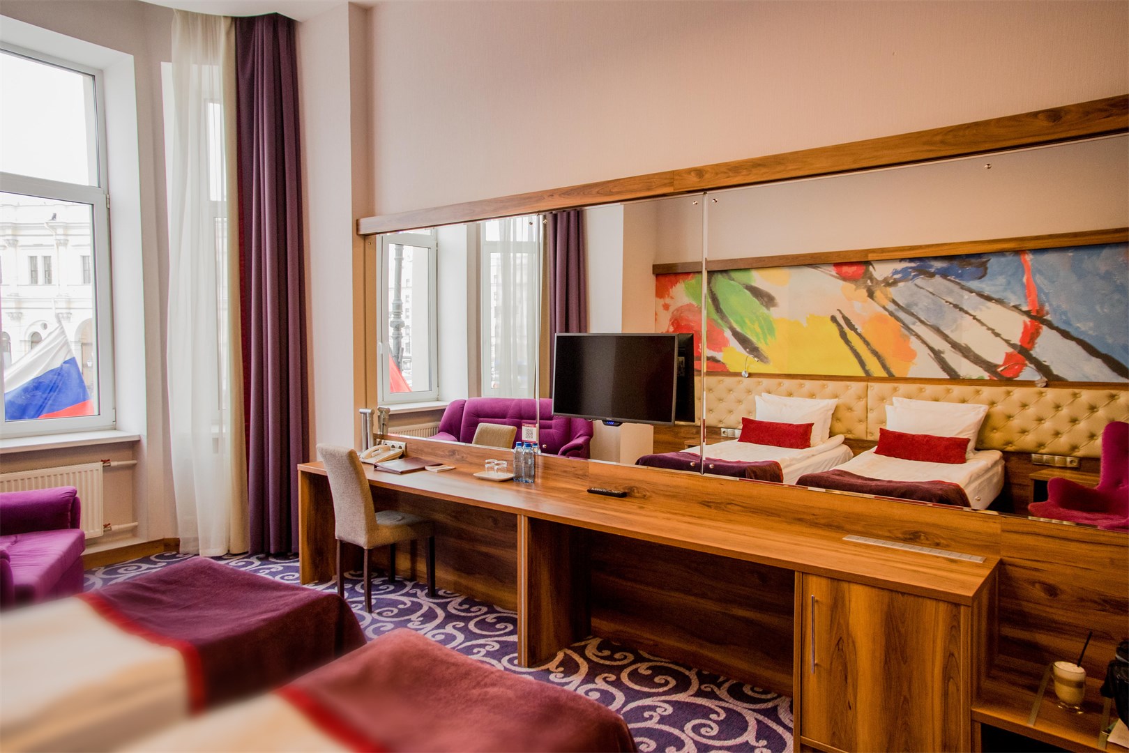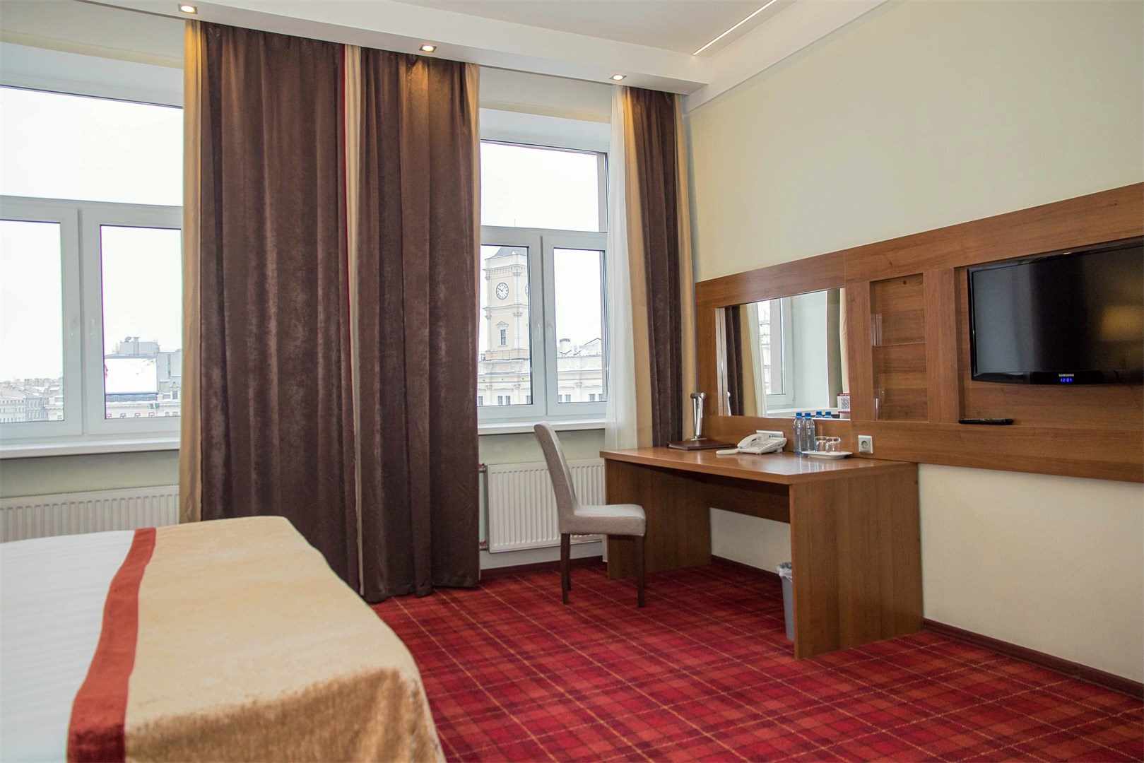 В непосредственной близости функционируют кафе, рестораны, торговые и бизнес-центры, супермаркеты, аптеки. Расстояние до метро Площадь восстания составляет 140 метров, до ближайшего аэропорта – 23 километра. Добраться до железнодорожного вокзала можно за 2 минуты на автомобиле. Номерной фонд разного уровня комфорта и вместимости расположился в 5-этажном здании. В комнатах установлена удобная мебель для отдыха, есть места для хранения одежды. К услугам гостей телевизор, кондиционер, сейф, электрический чайник. Санузел индивидуальный, с душем, полотенцами, туалетными принадлежностями и феном. На территории отеля работает ресторан французской кухни. Есть возможность заказать еду и напитки в номер. При необходимости, гости могут воспользоваться трансфером. На всей территории отеля работает высокоскоростной интернет. В качестве дополнительные услуги можно воспользоваться прачечной. Гостям готовы предложить интересные водные экскурсии.