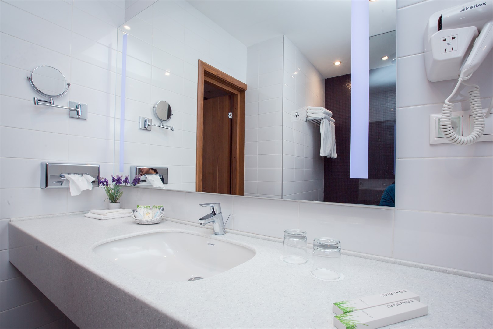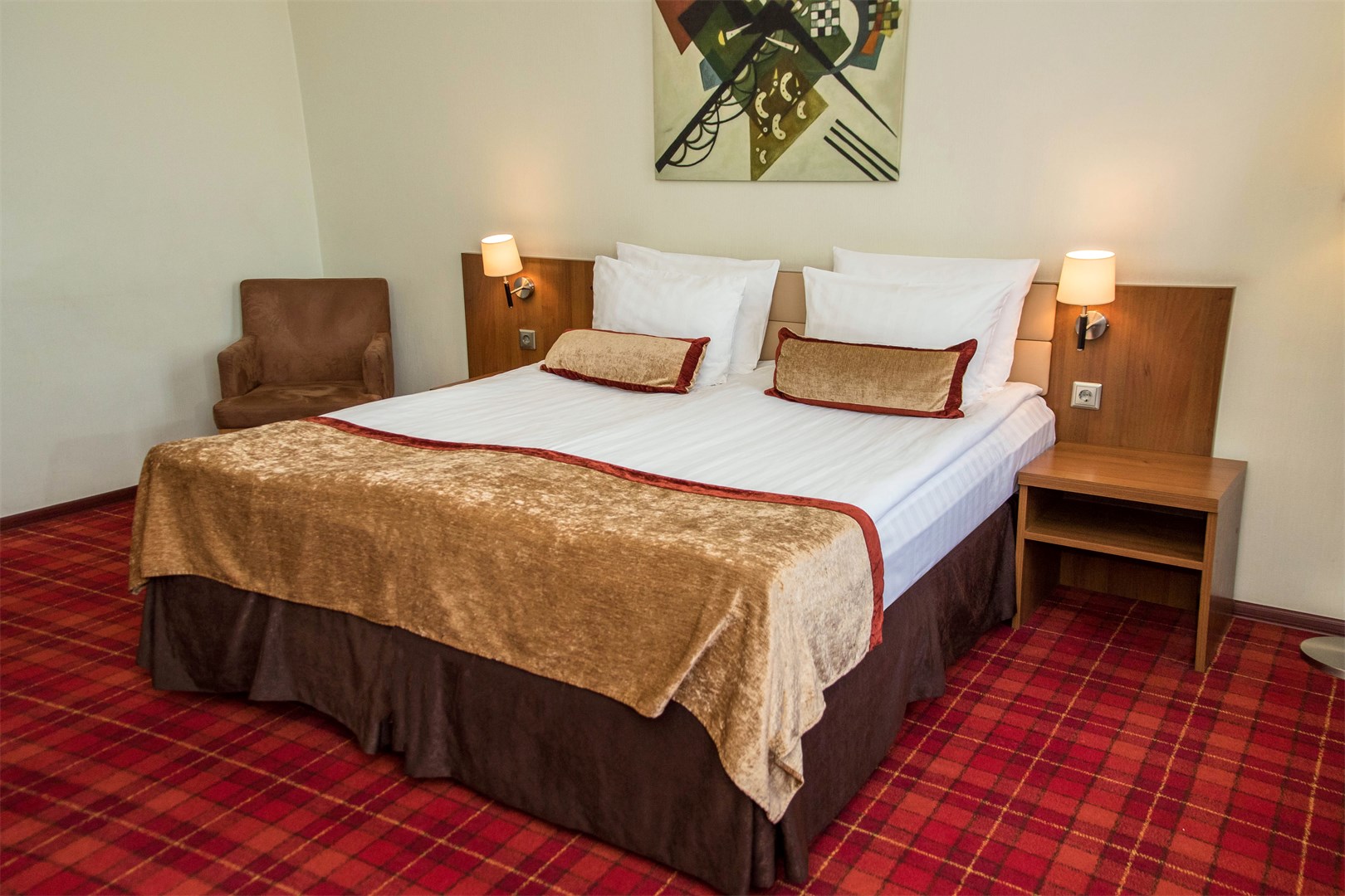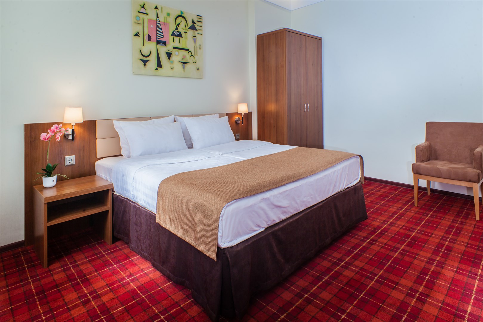 В номере: зеркало, ковровое покрытие, кровать двуспальная, стол, шкаф, вентилятор, кондиционер, мини-холодильник, сейф, телевизор ЖК, телефон, электрочайник