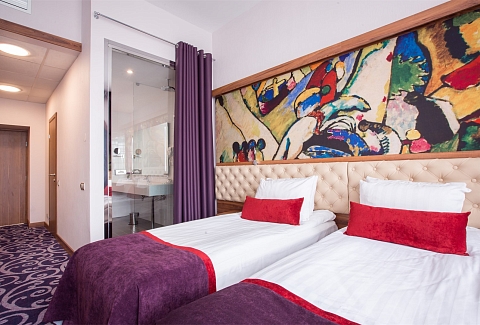 В номере: зеркало, кровати односпальные /одна двуспальная кровать, стол, стулья, шкаф, кондиционер, сейф, телевизор, телефон, электрочайник